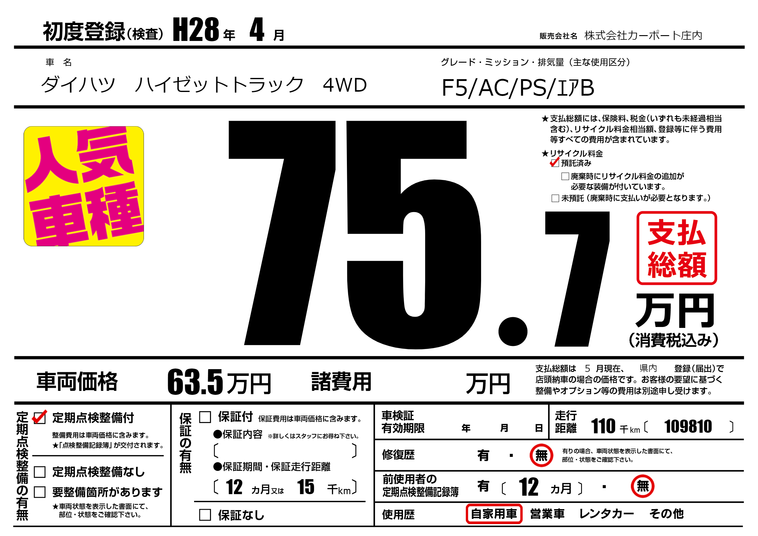 | 定期点検整備 | 定期点検整備あり | ||