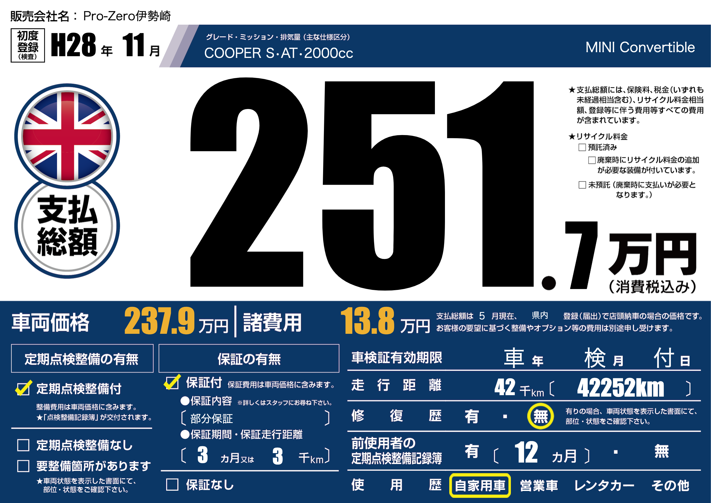 | 定期点検整備 | 定期点検整備あり | ||