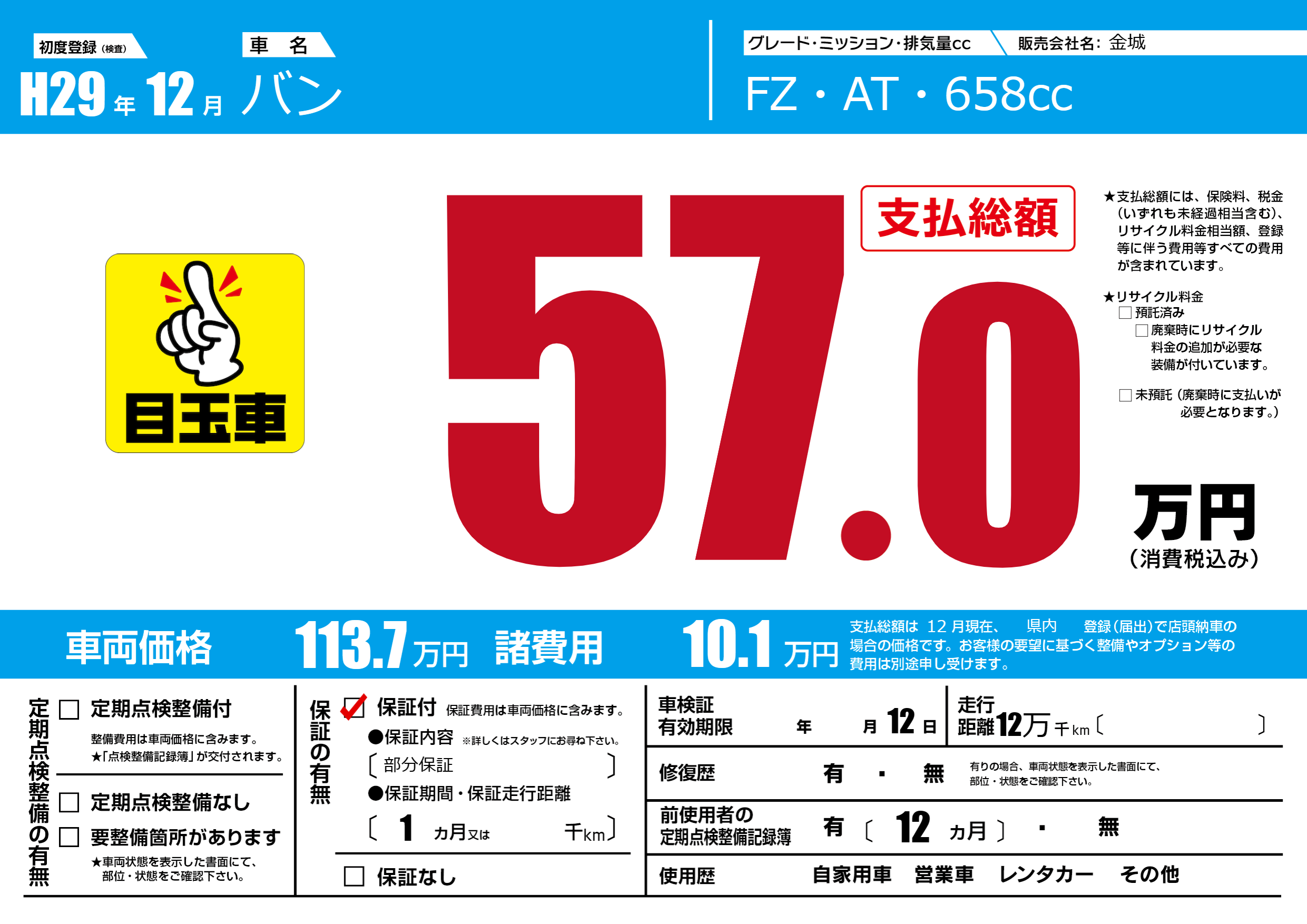 | 車検制限 | - 年 - 月 12日 | ||