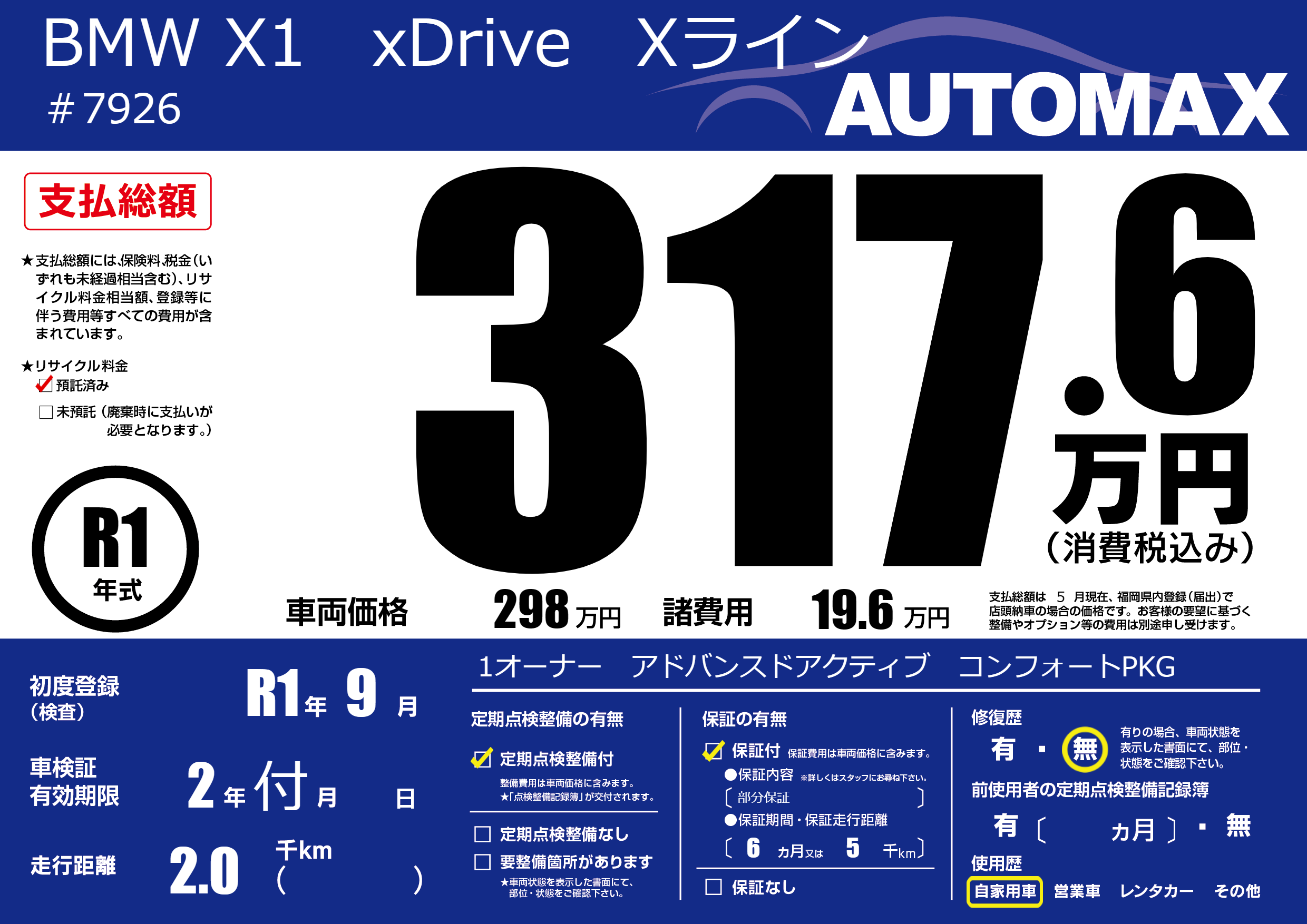 | 初年度登録 | R1年9月 | ||
