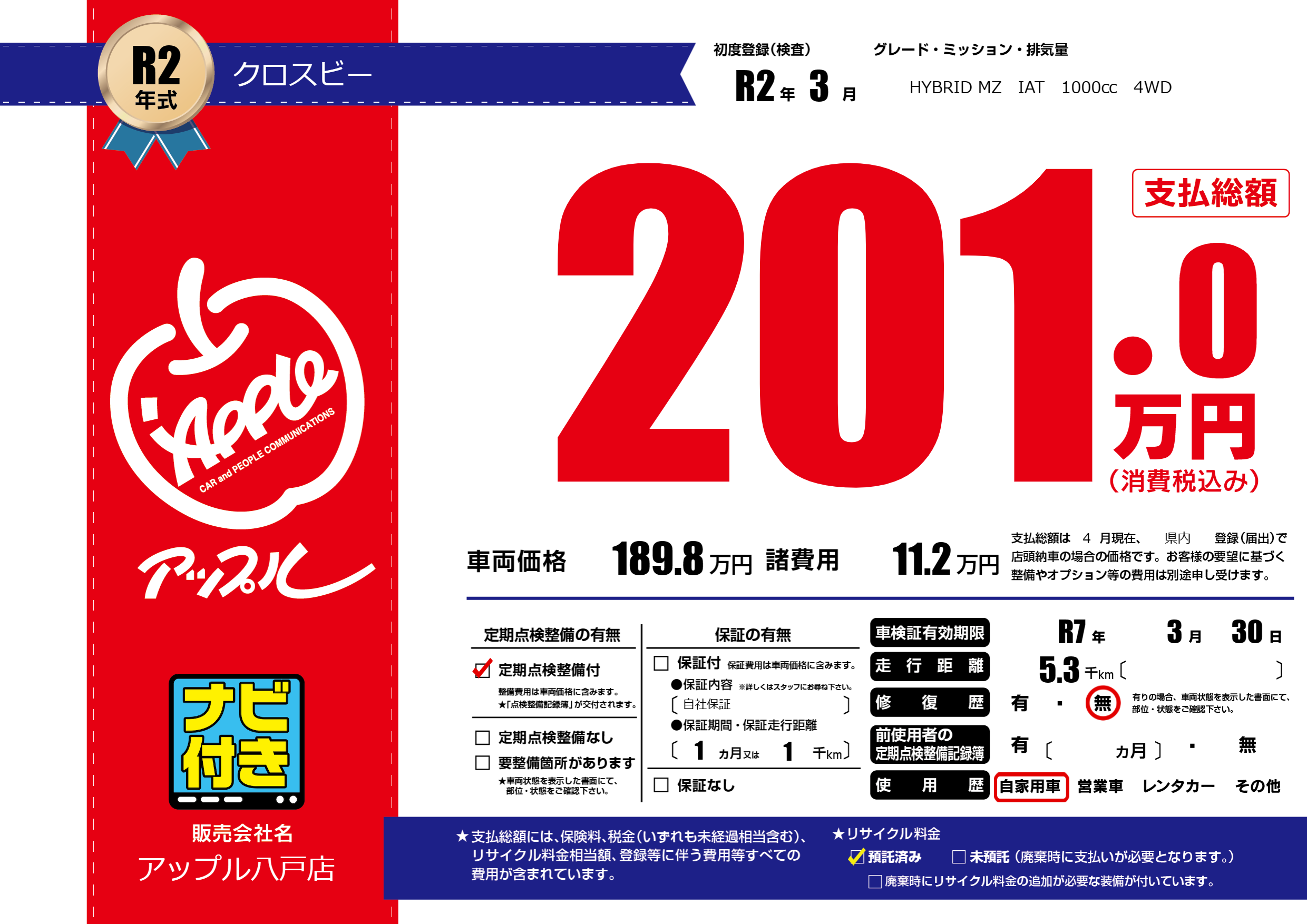 | 車名 | クロスビー | グレード ミッション 排気量 |