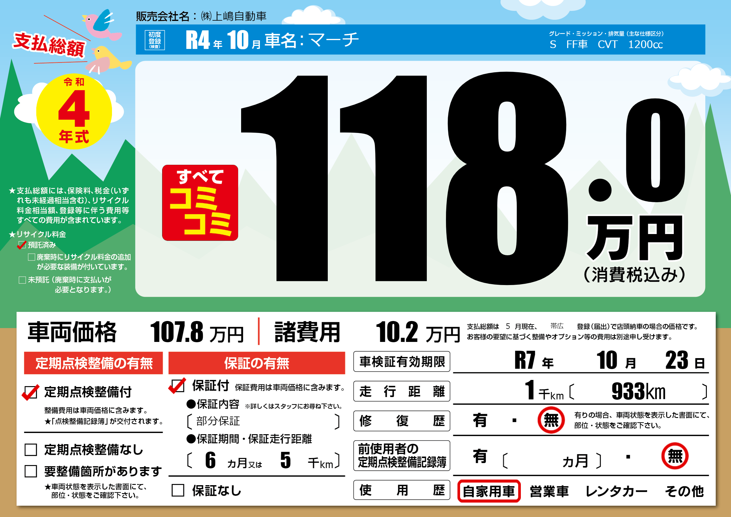 | 車名 | マーチ | グレード ミッション 排気量 |