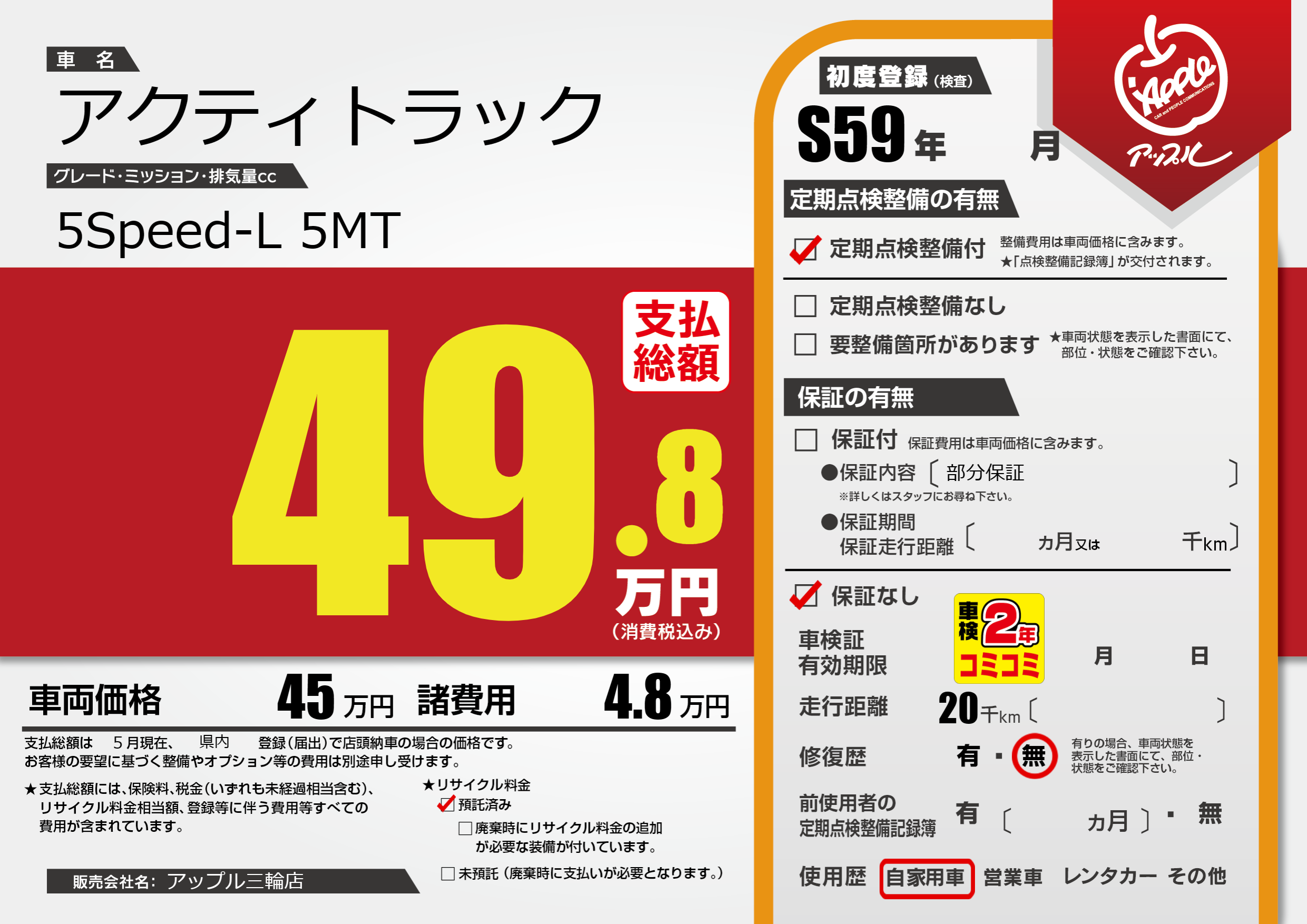 | 車名 | アクティトラック | グレード ミッション 排気量 |