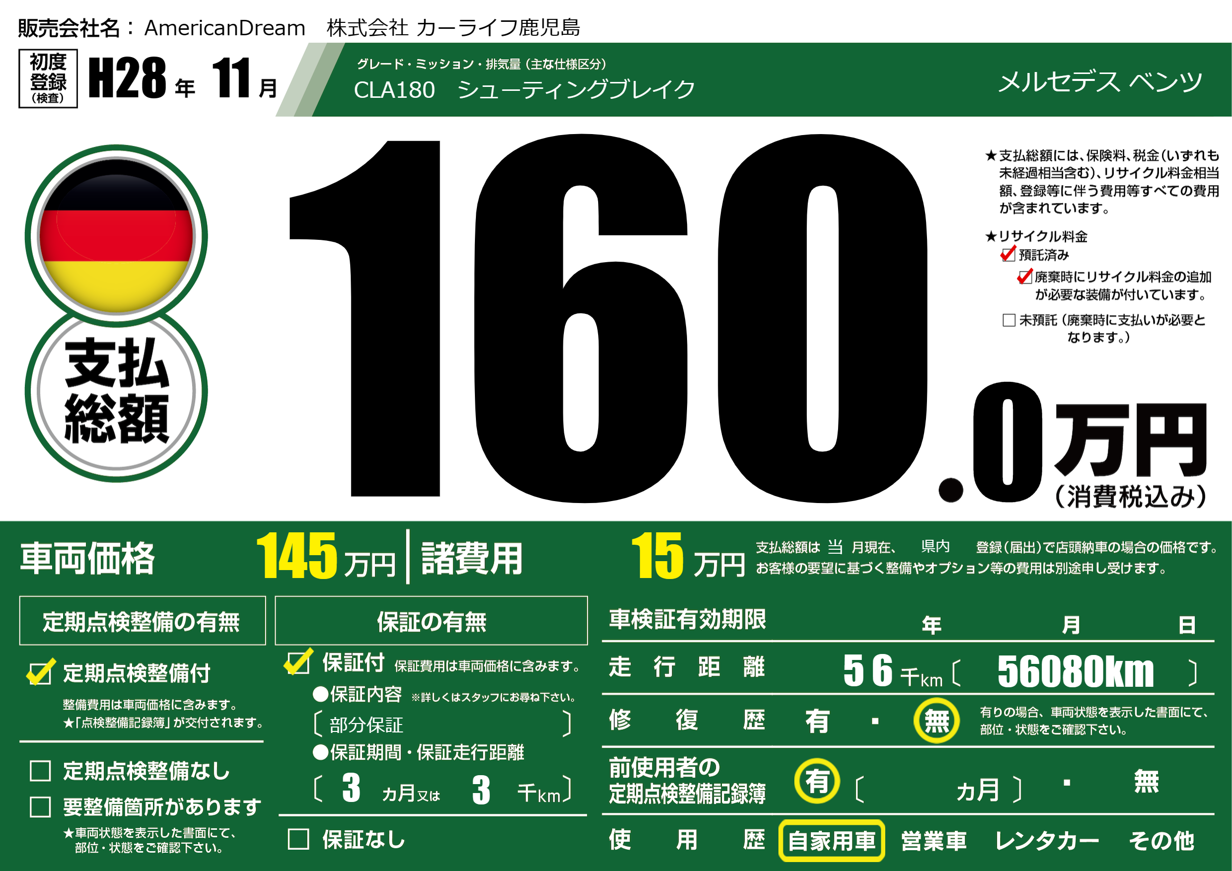 | 車名 | メルセデス ベンツ | グレード ミッション 排気量 |