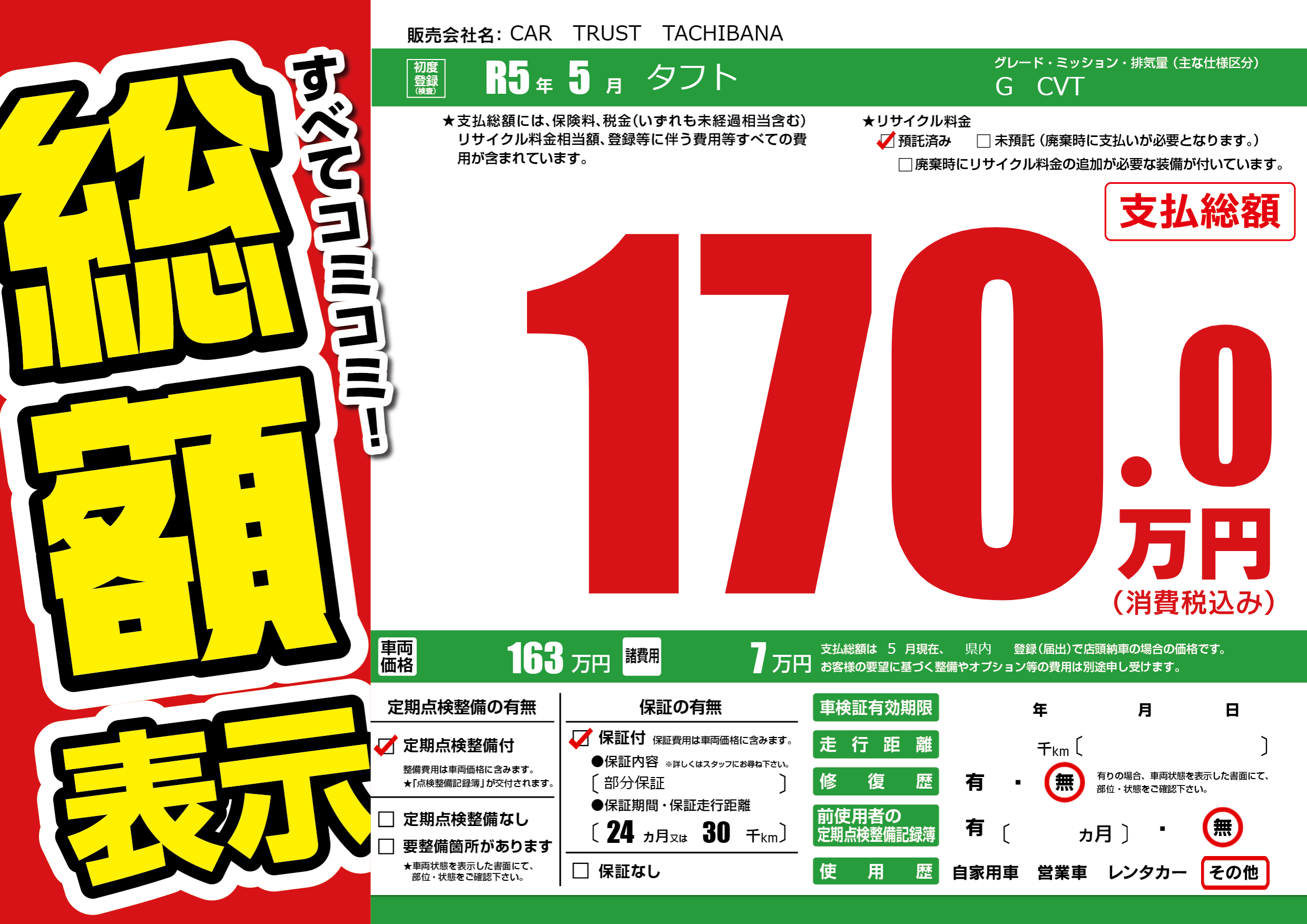 保証付き 保証内容(部分保証) 24ヶ月または(30)千kmまで |