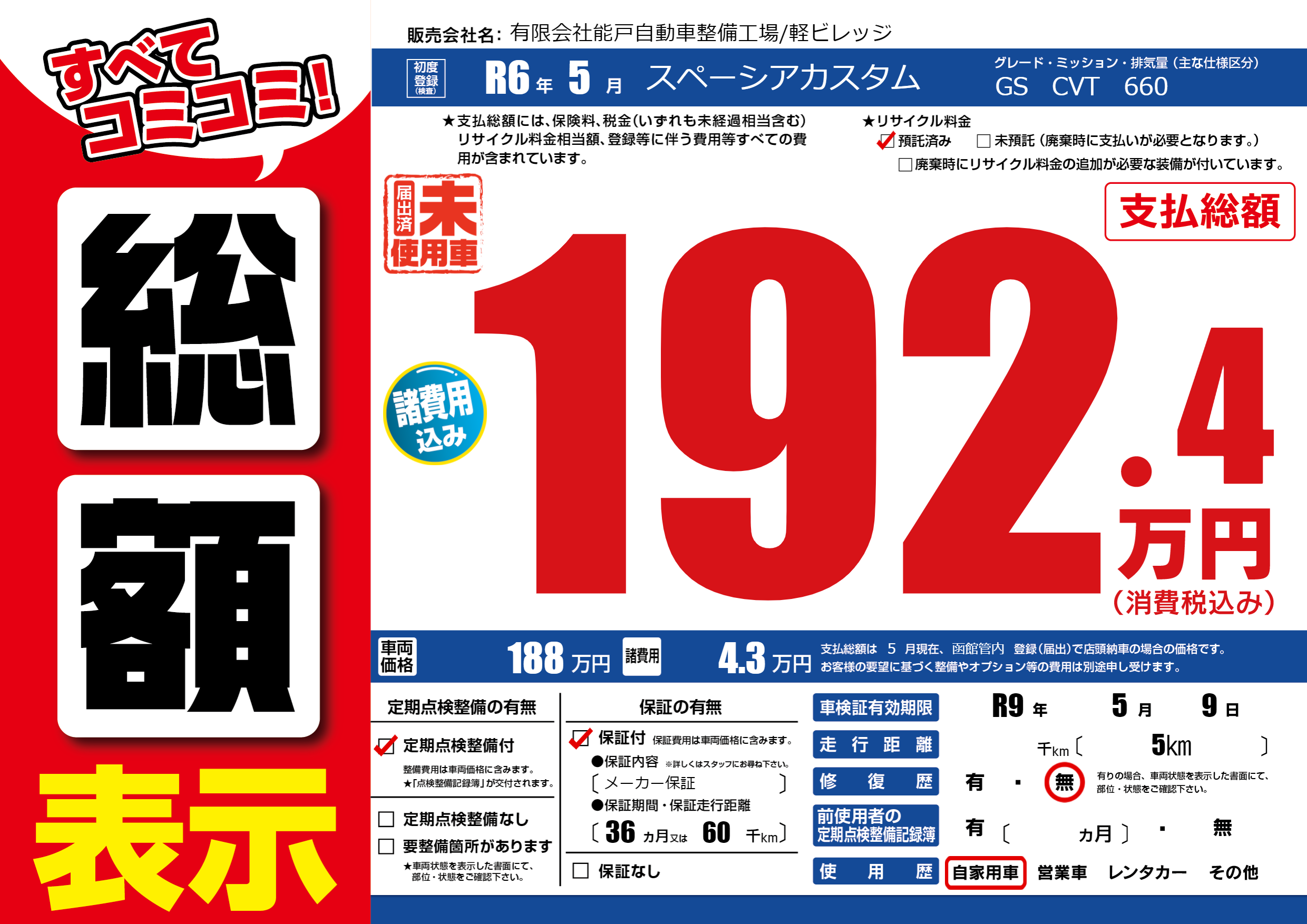 | 車検制限 | R9年 5月 9日 | ||