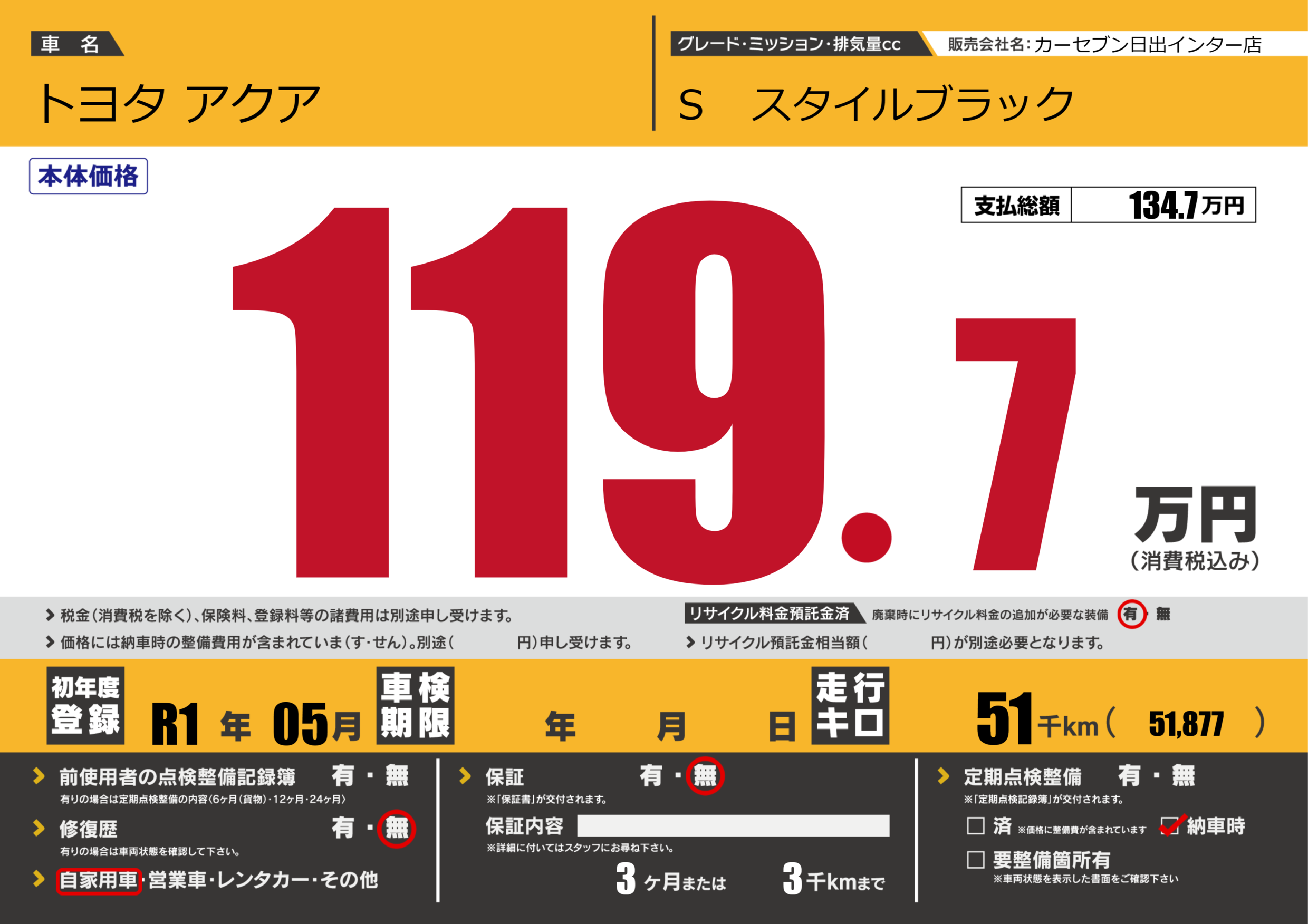 | 定期点検整備 | 納車時あり | ||