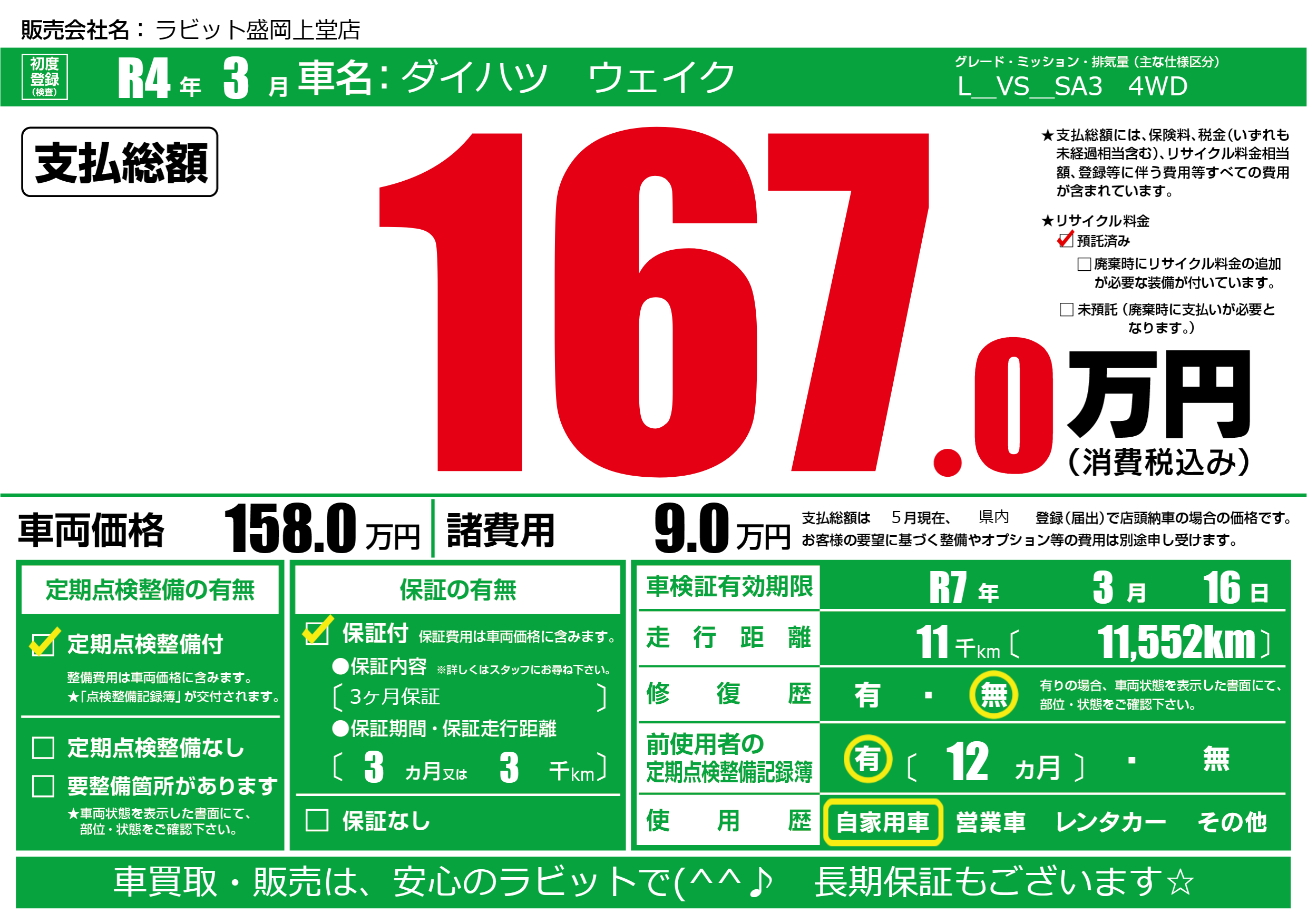 | 車検制限 | R7年 3月 16日 | ||