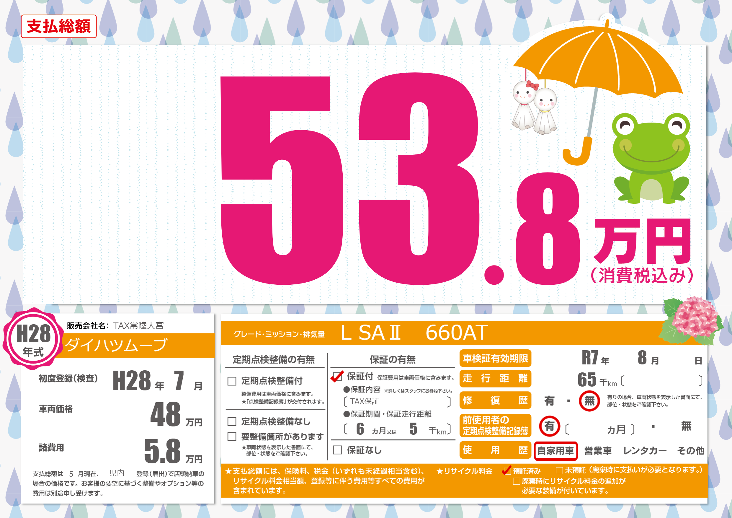保証付き 保証内容(TAX保証) 6ヶ月または(5)千kmまで |