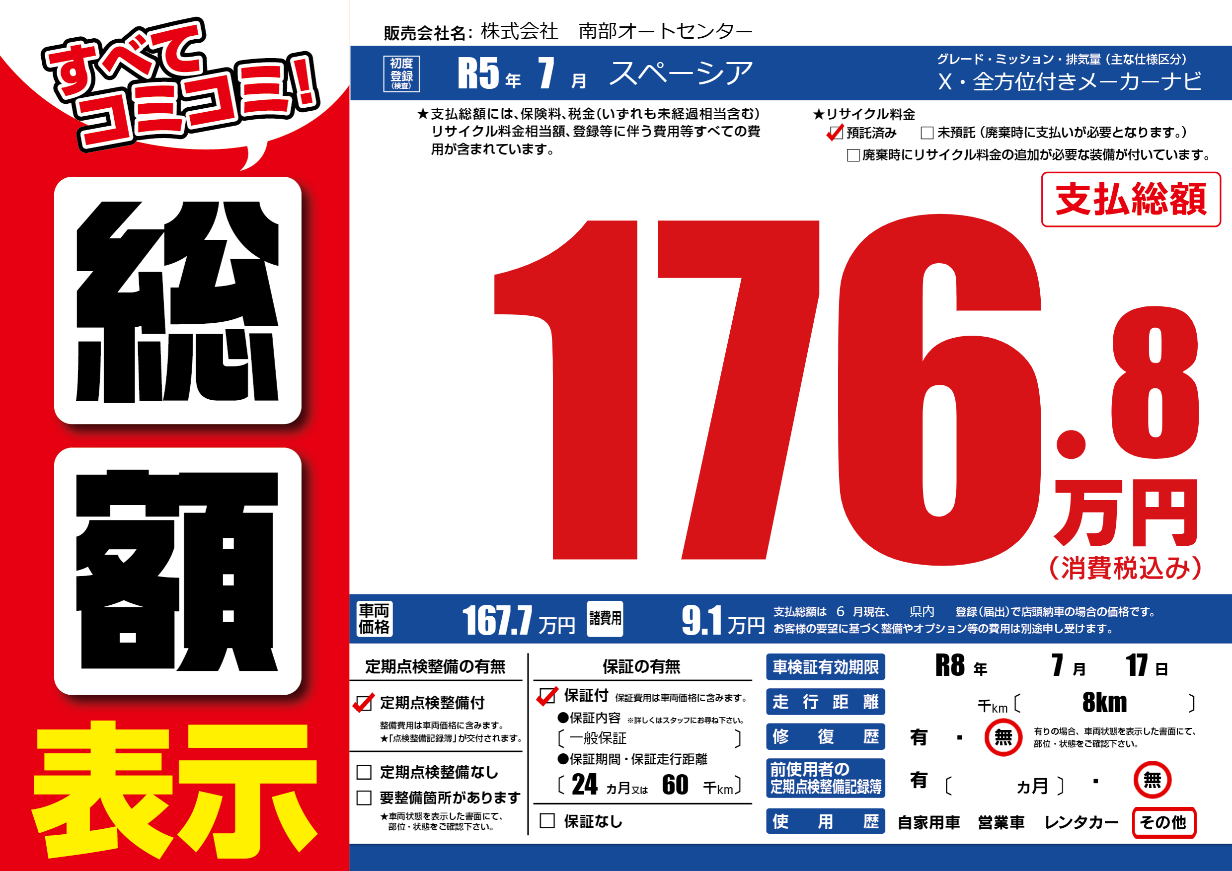 | 車名 | スペーシア | グレード ミッション 排気量 |