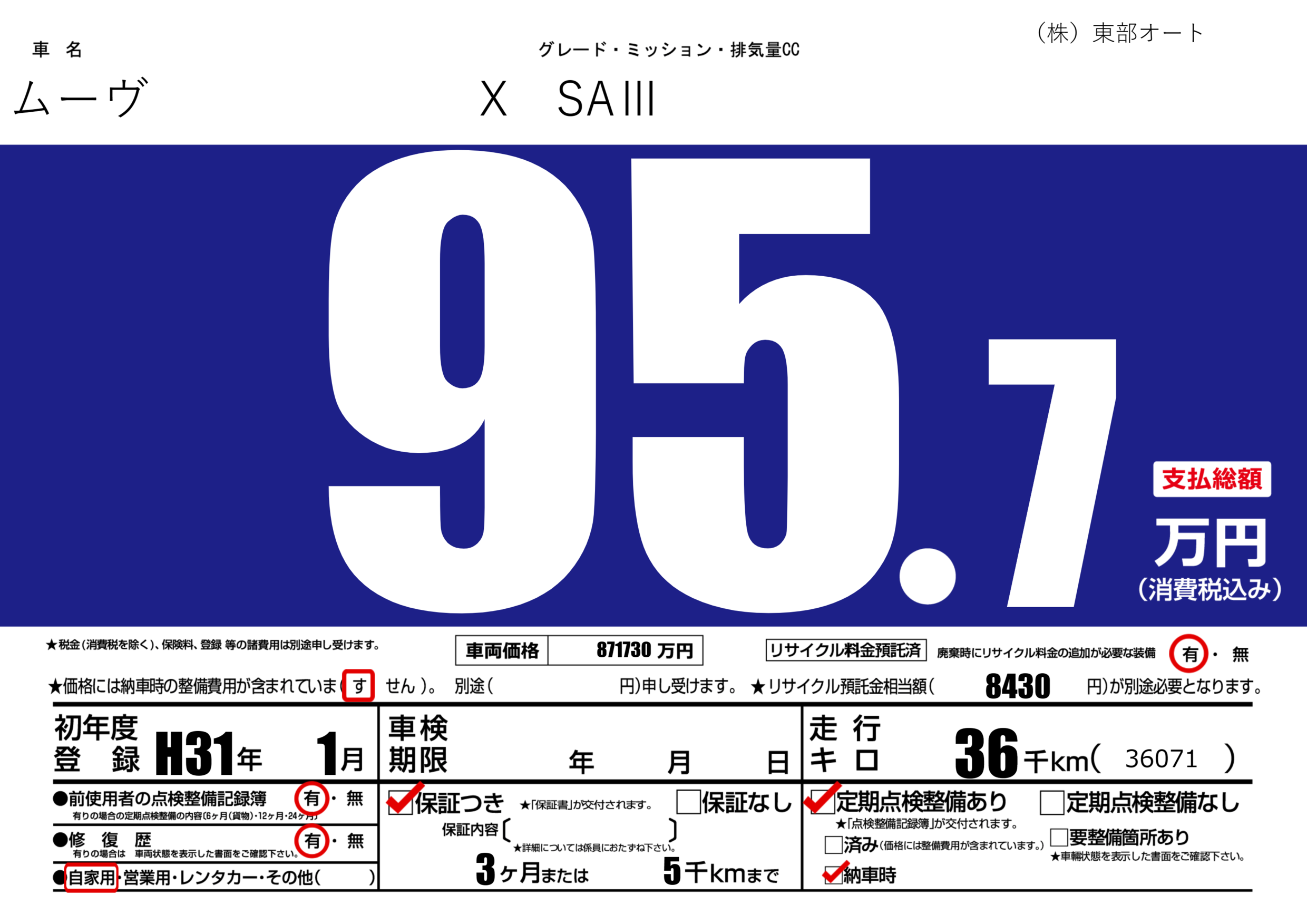 | 車名 | ムーヴ | グレード ミッション 排気量 |