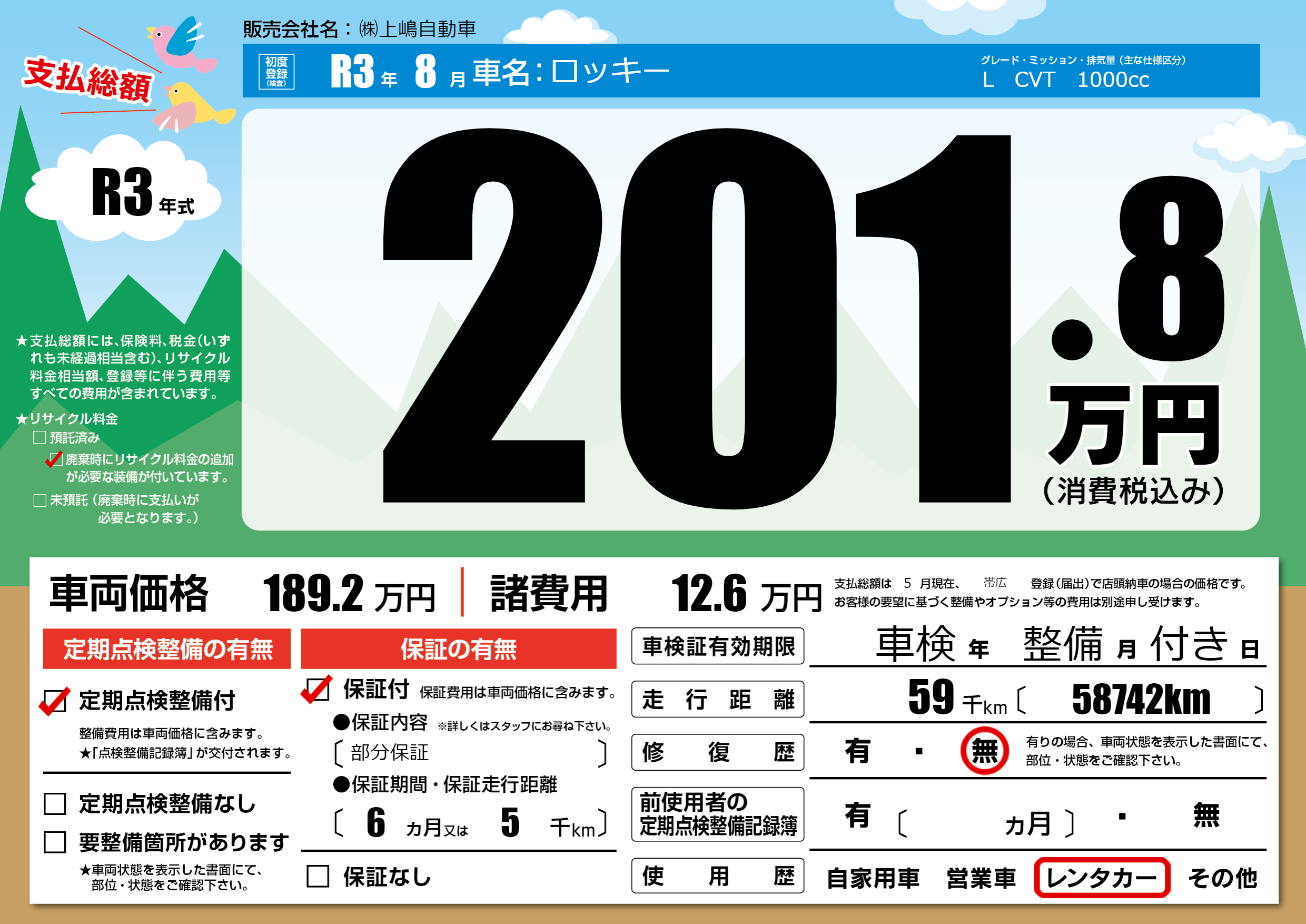 保証付き 保証内容(部分保証) 6ヶ月または(5)千kmまで |