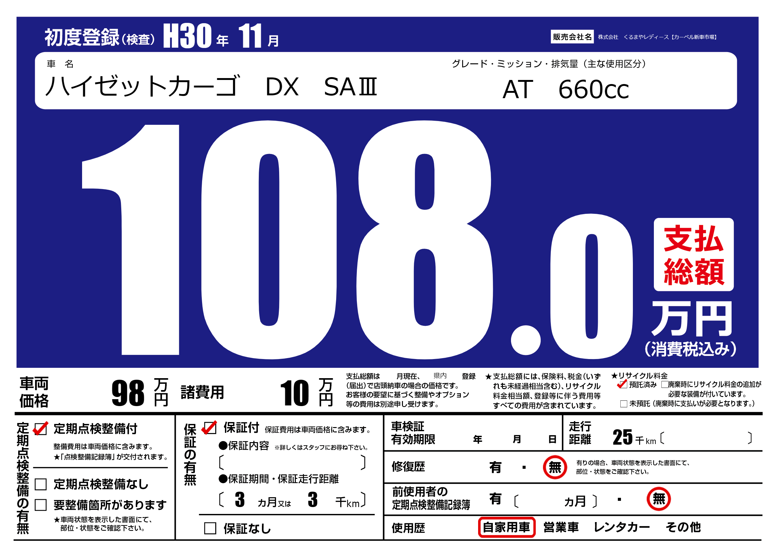 保証付き 保証内容(---) 3ヶ月または(3)千kmまで |