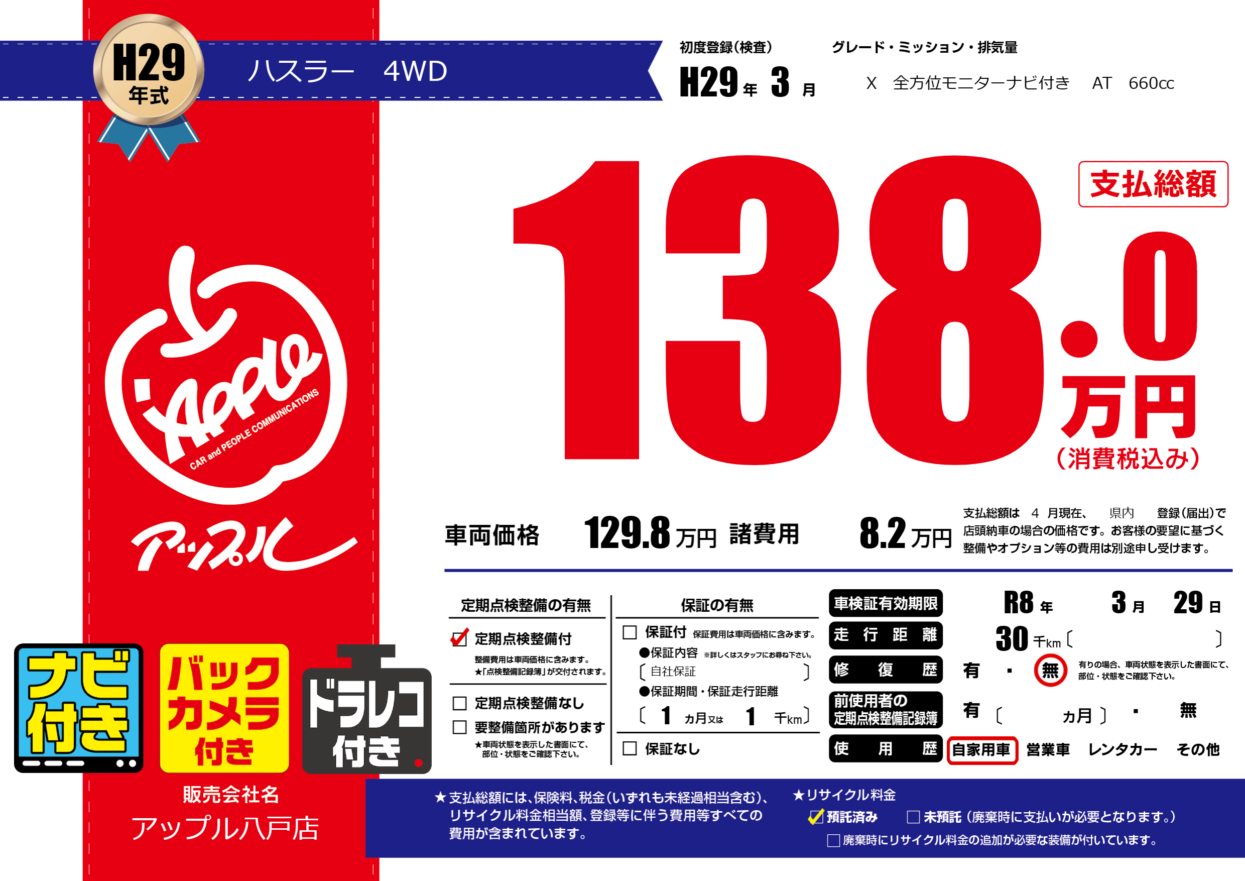 なし | 車検制限 | R8年3月29月 |