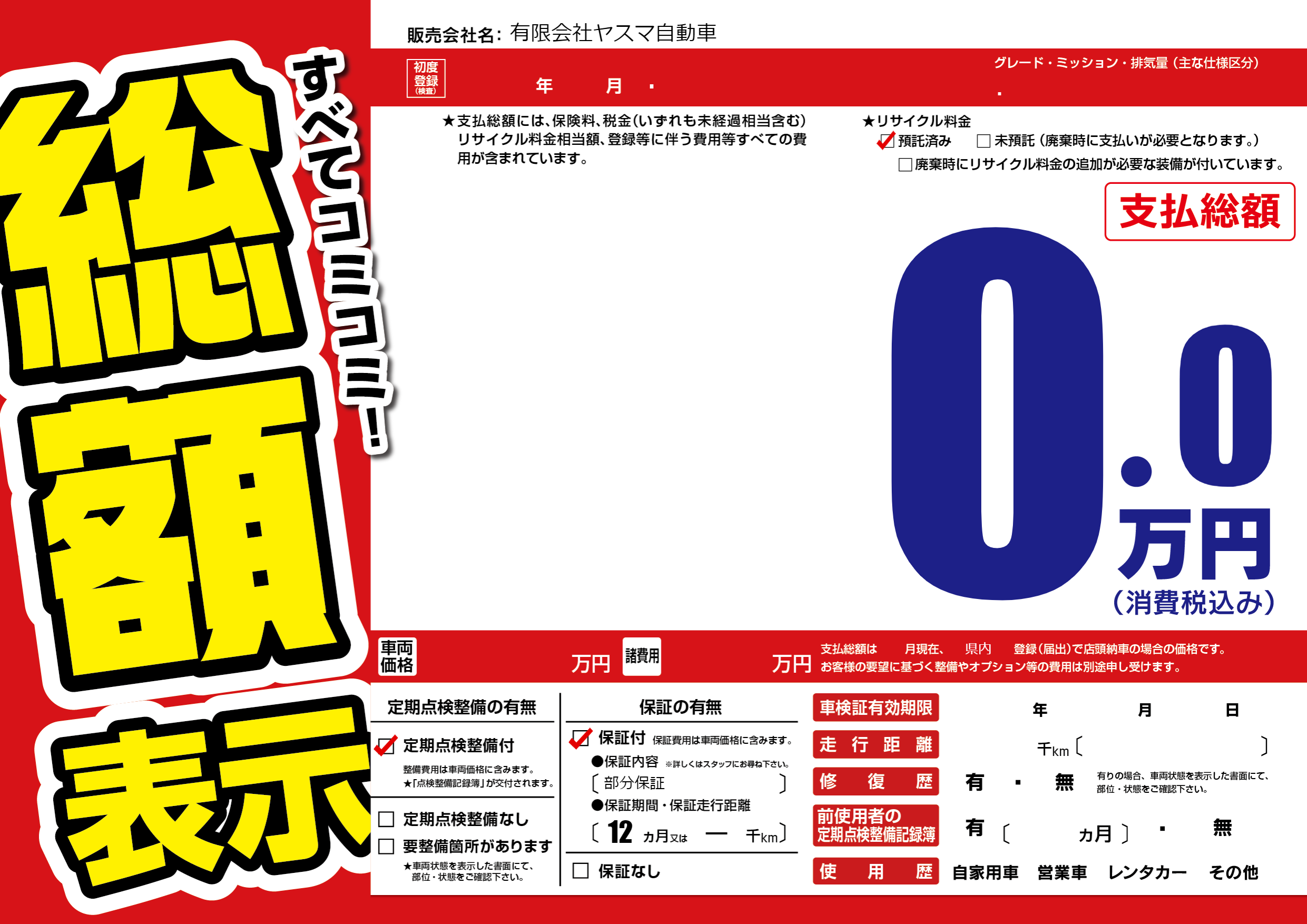 | 車検制限 | - 年 - 月 - 日 | ||
