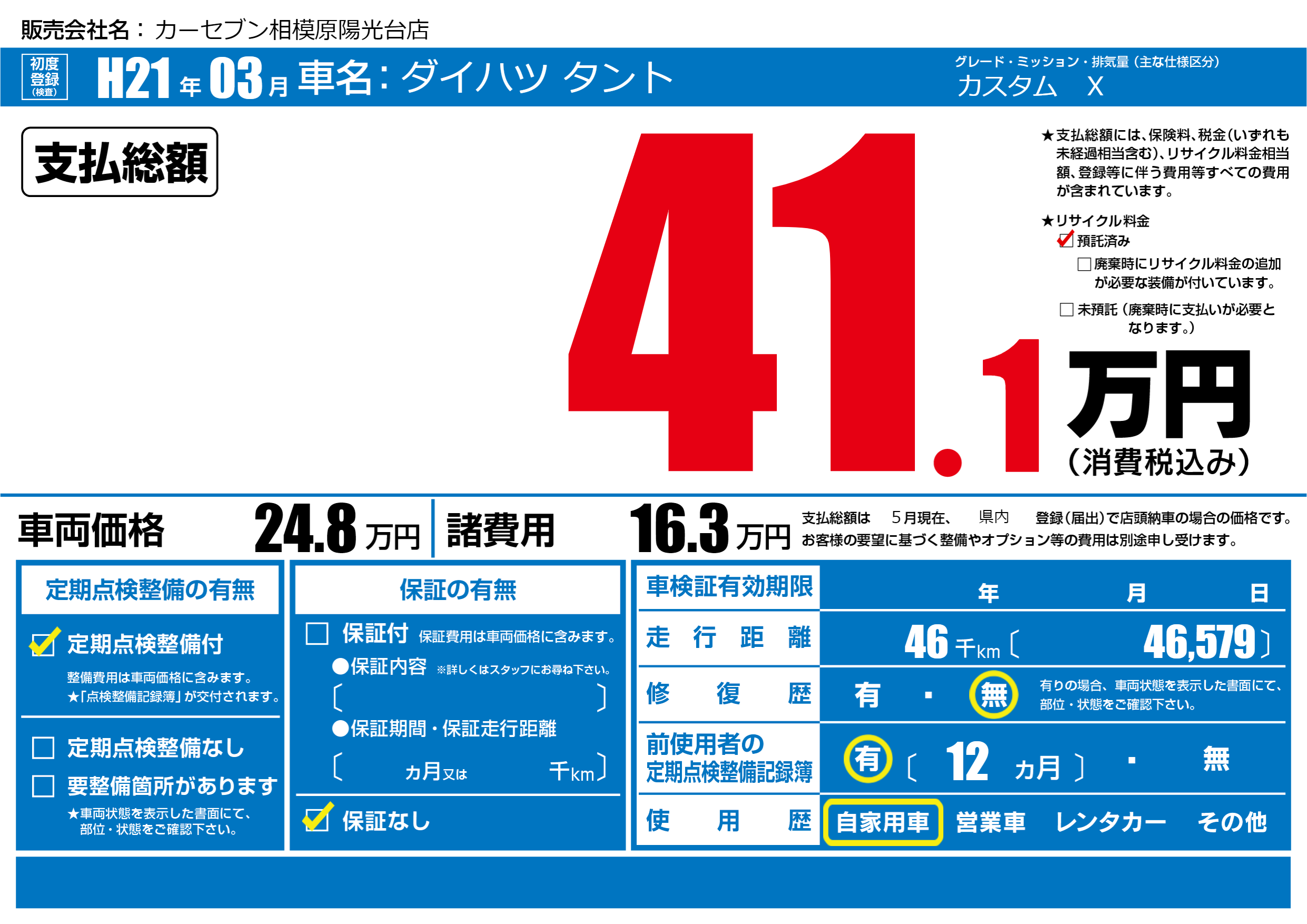 | 定期点検整備 | 定期点検整備あり | ||