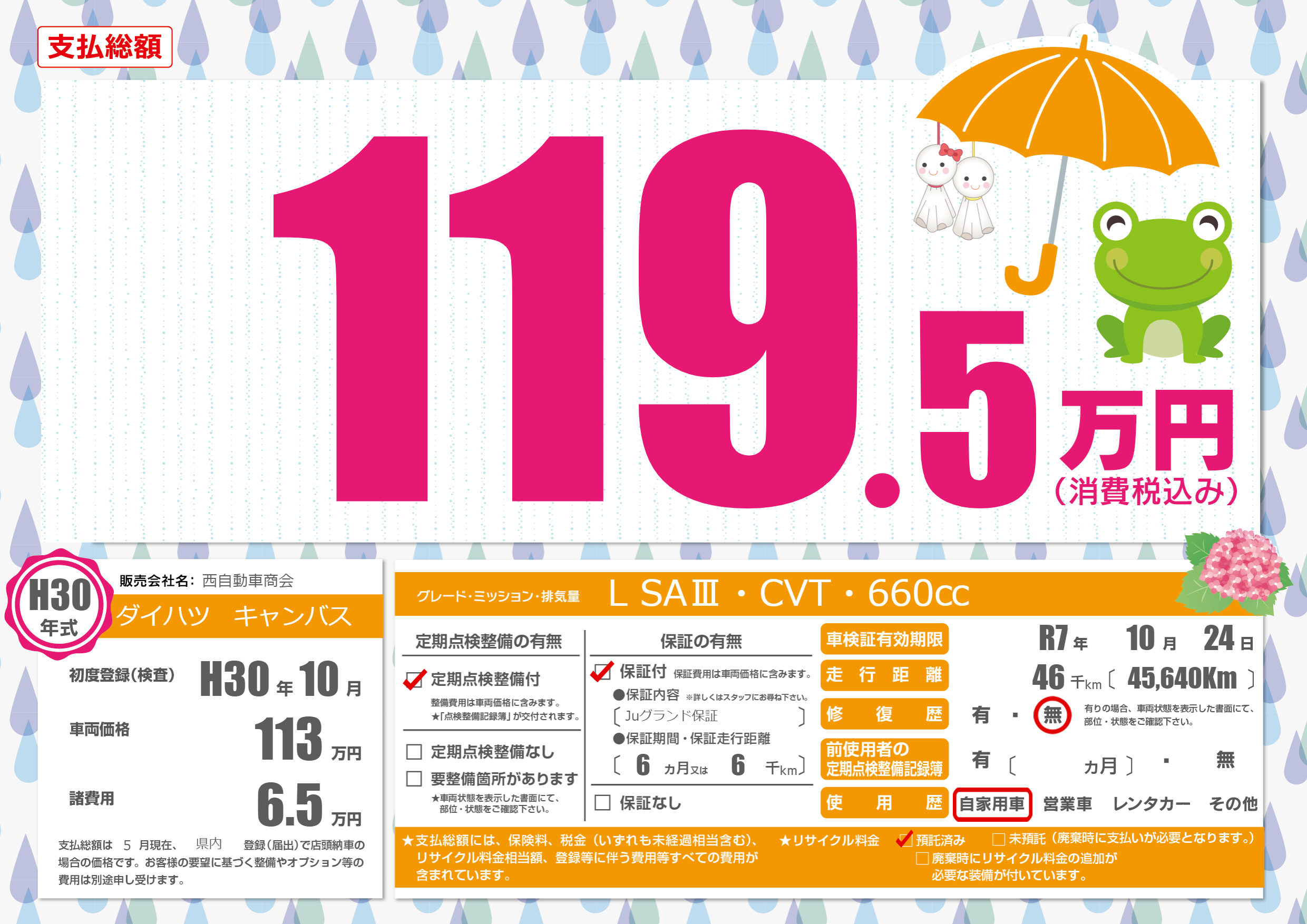 なし | 車検制限 | R7年10月24月 |