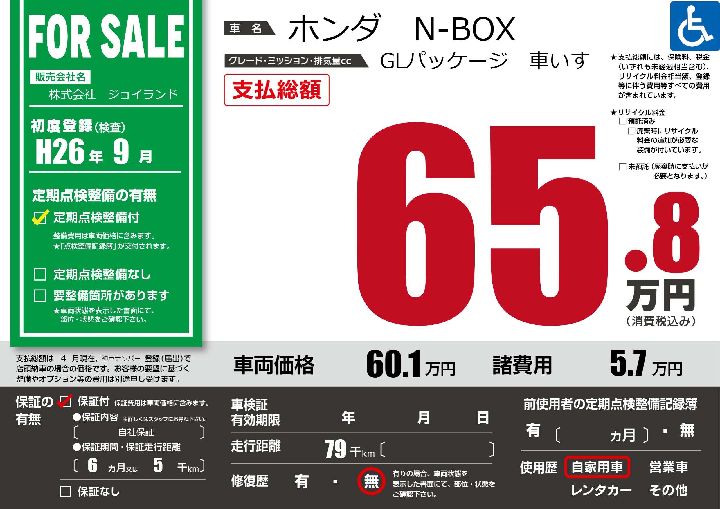 | 走行キロ | 7.9万km | 初年度登録 | H26年9月 |