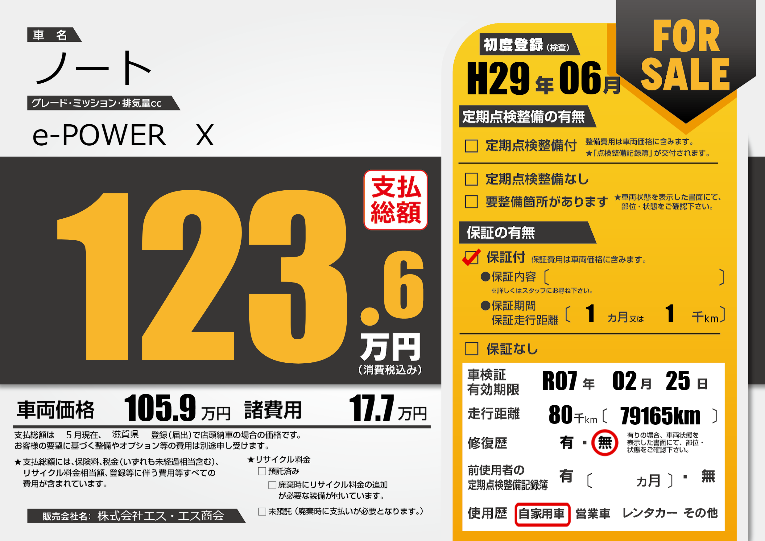 | 走行キロ | 8万km | 初年度登録 | H29年06月 |