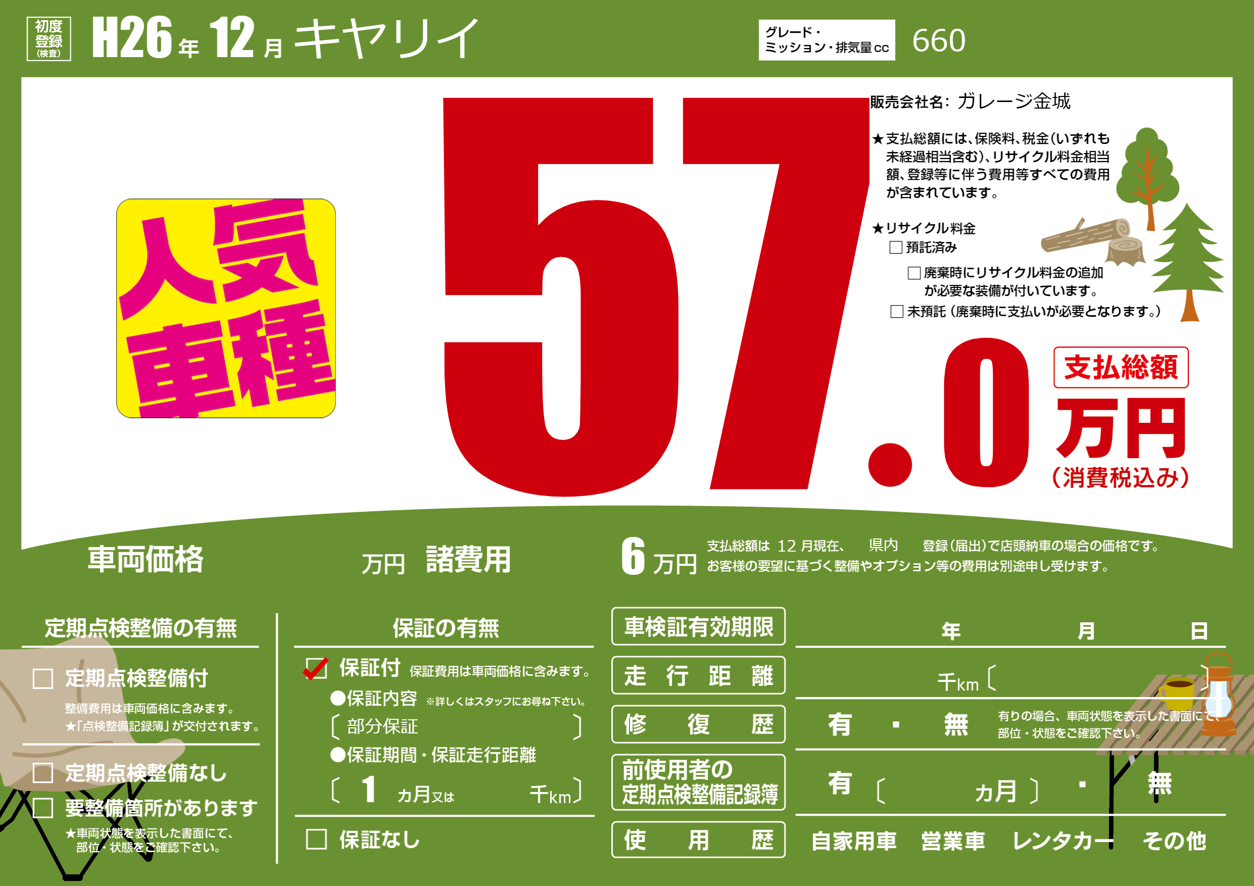 保証付き 保証内容(部分保証) 1ヶ月または()千kmまで |