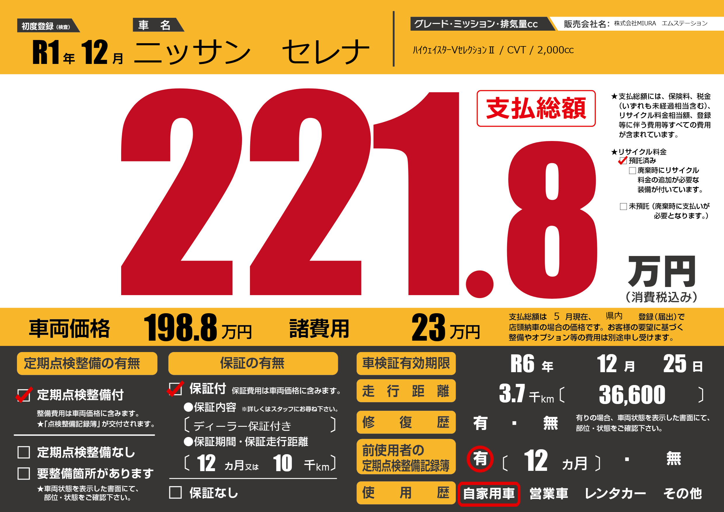| 車検制限 | R6年 12月 25日 | ||