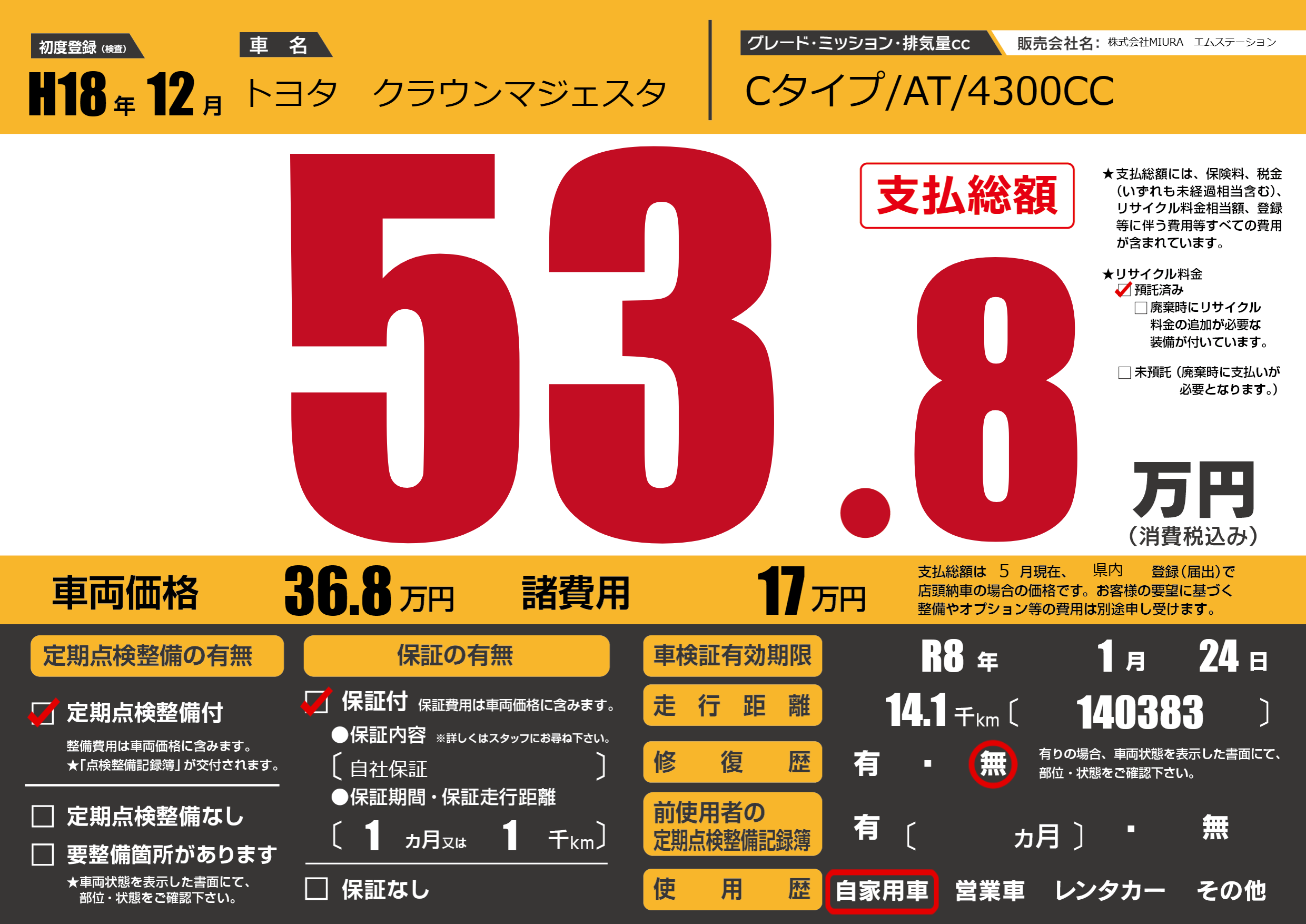 | 車検制限 | R8年 1月 24日 | ||