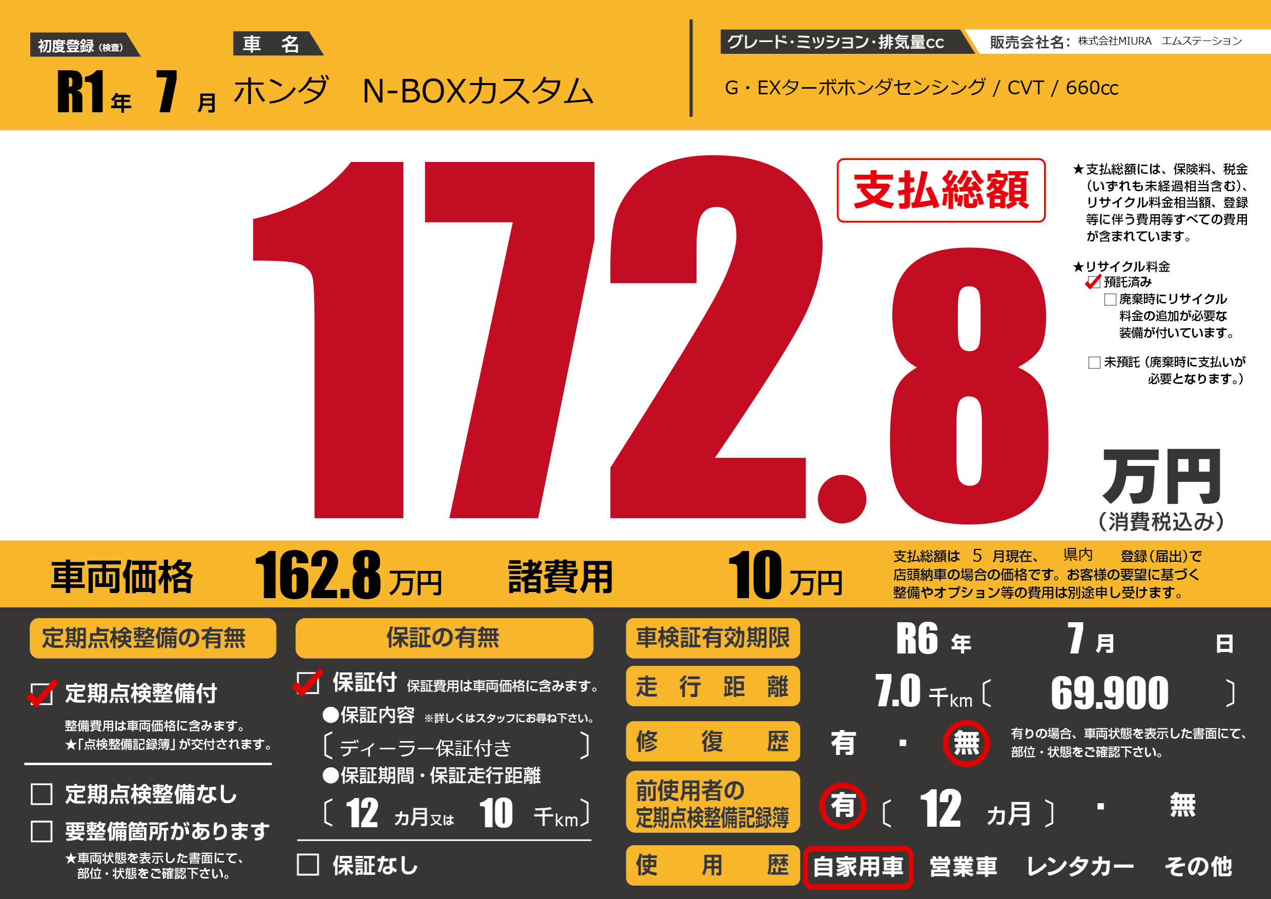 保証内容(ディーラー保証付き) 12ヶ月または10千km