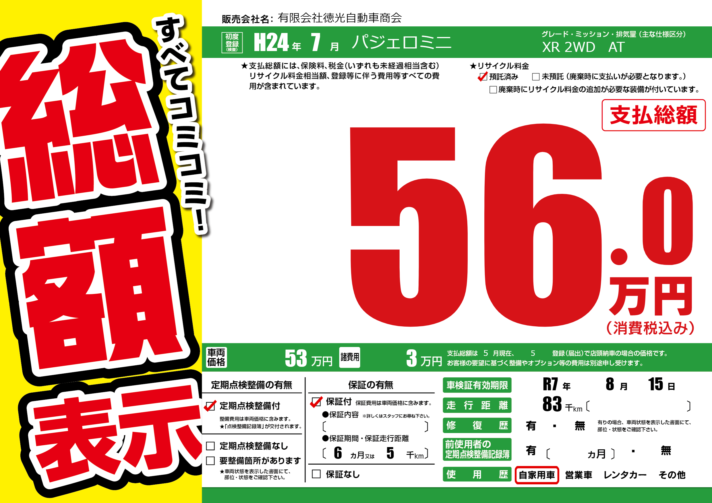 | 車検制限 | R7年 8月 15日 | ||