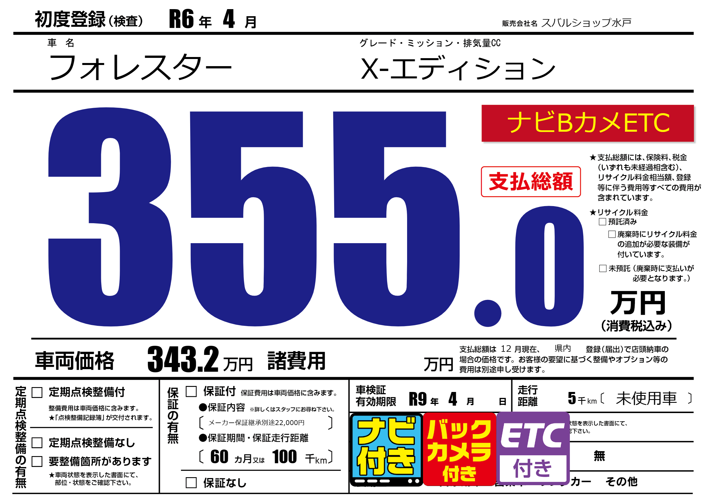 なし | 車検制限 | R9年4月---月 |