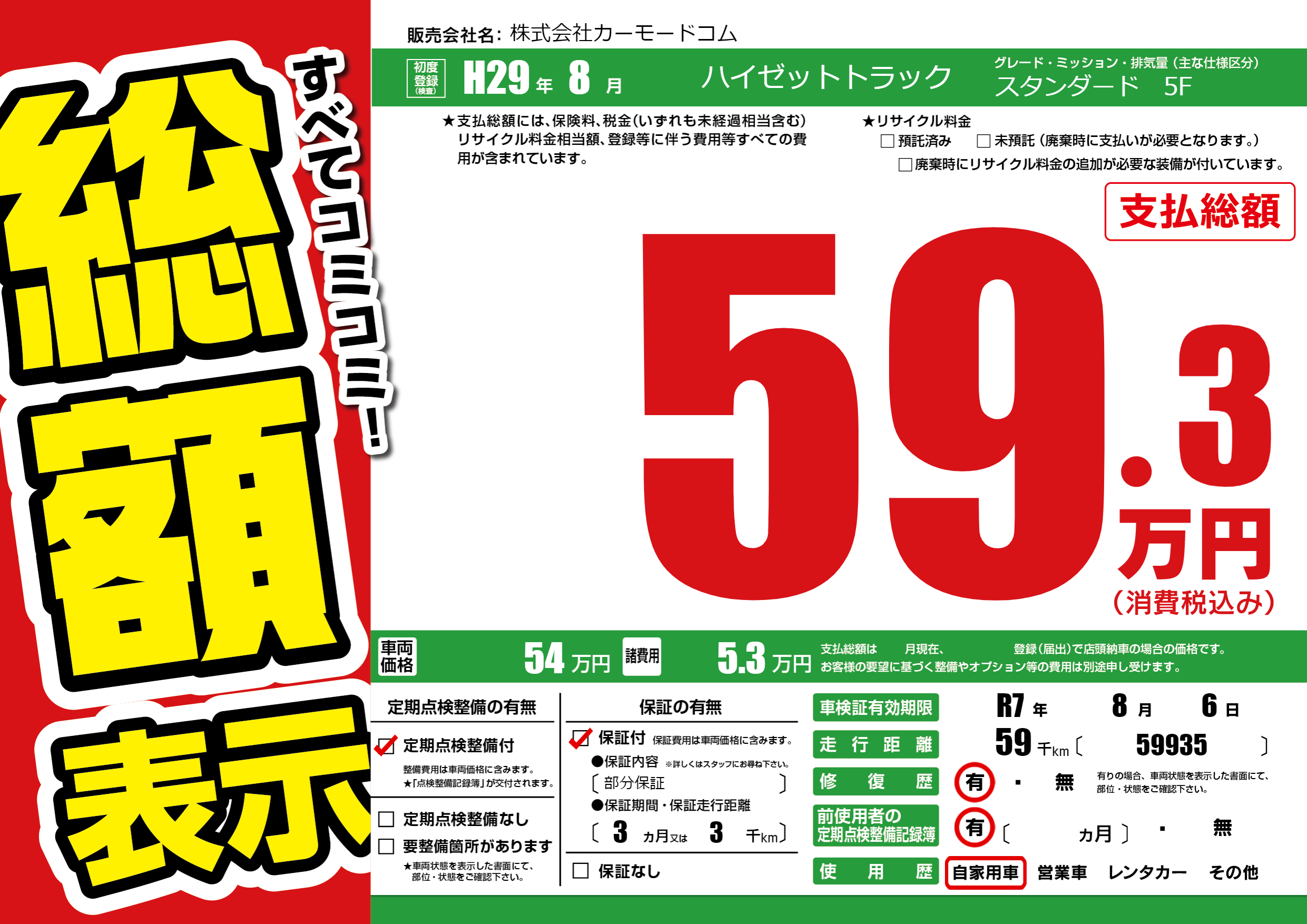 | 車名 | ハイゼットトラック | グレード ミッション 排気量 |