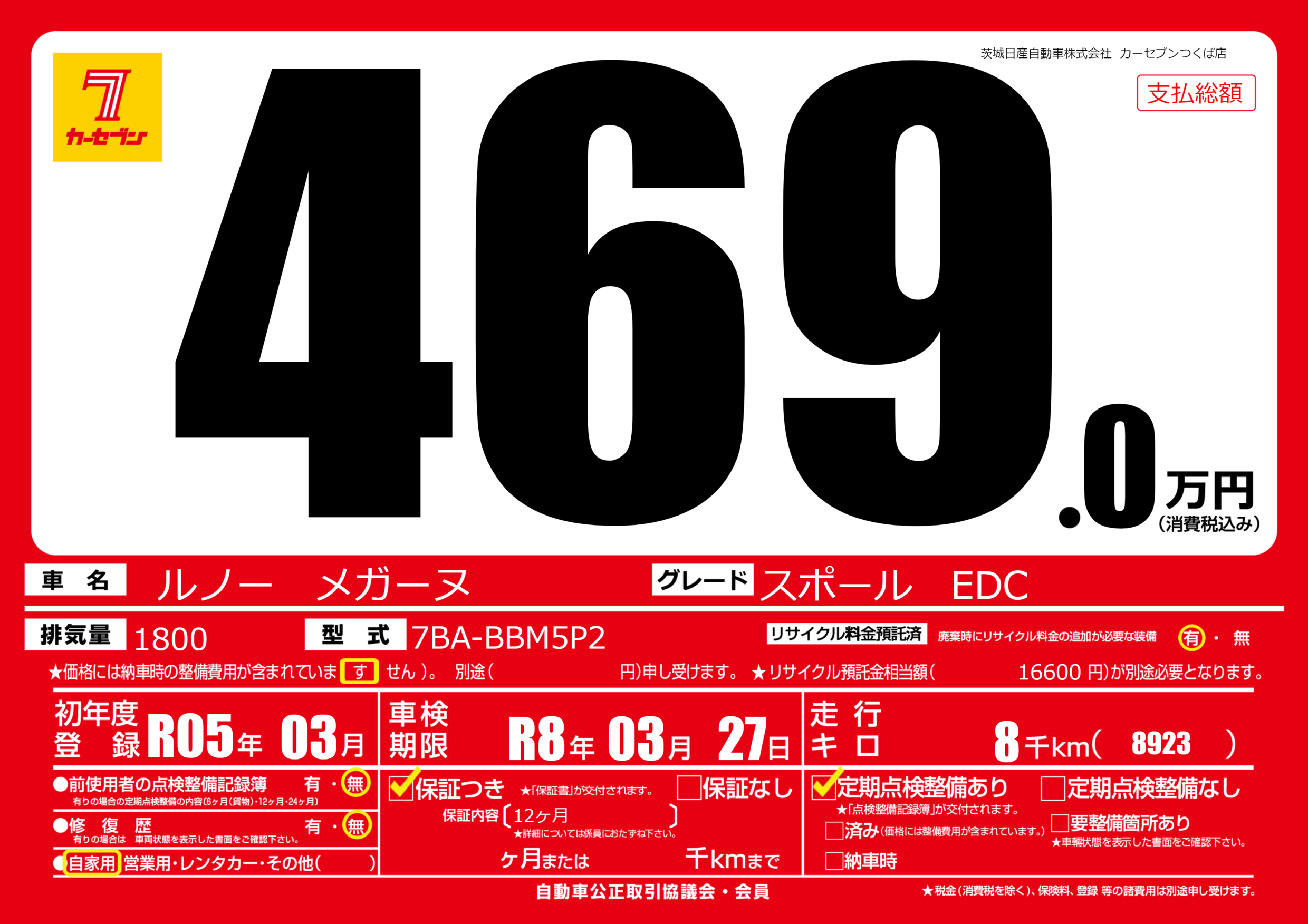 保証付き 保証内容(12ヶ月) ---ヶ月または()千kmまで |