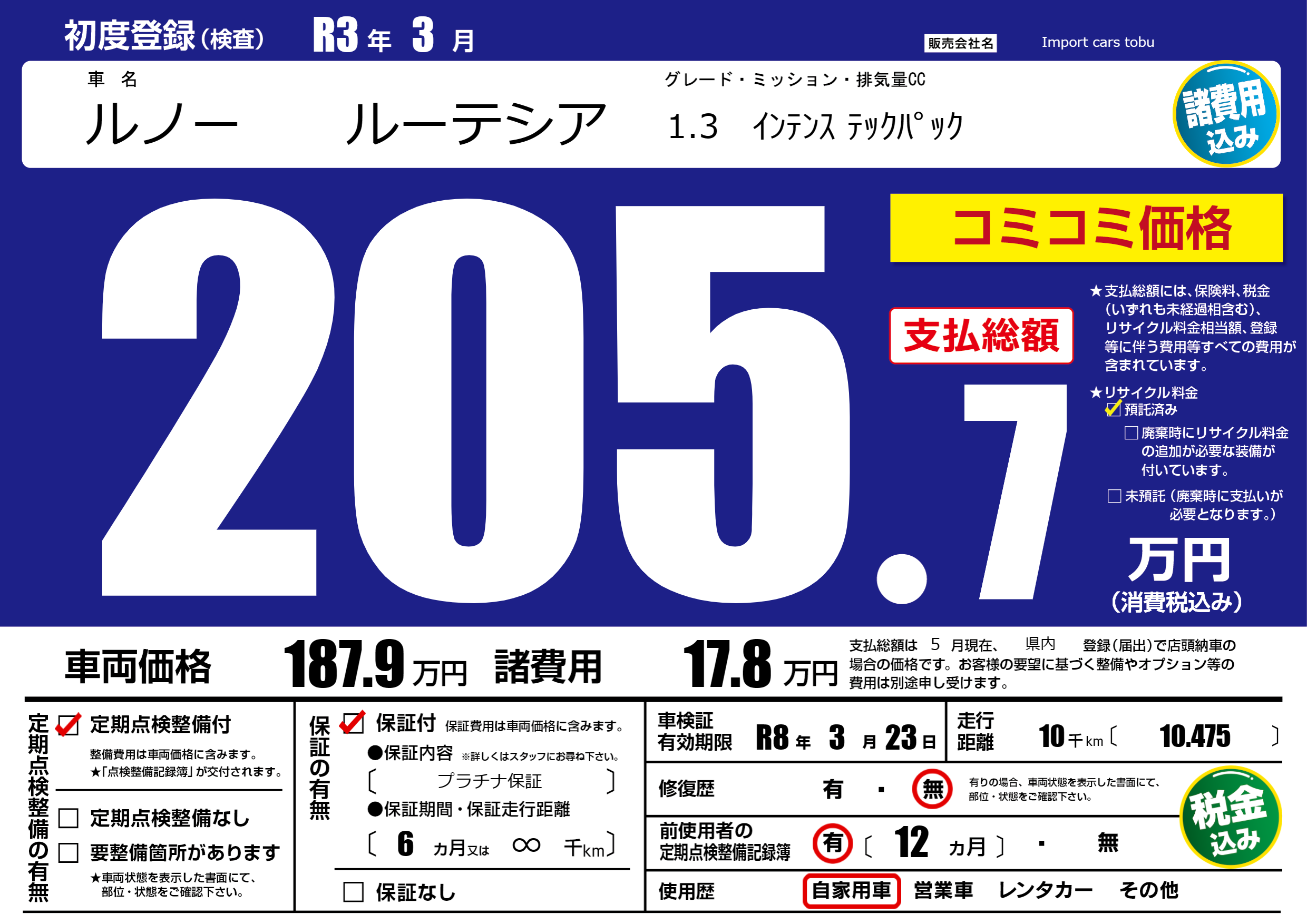 | 初年度登録 | R3年3月 | ||