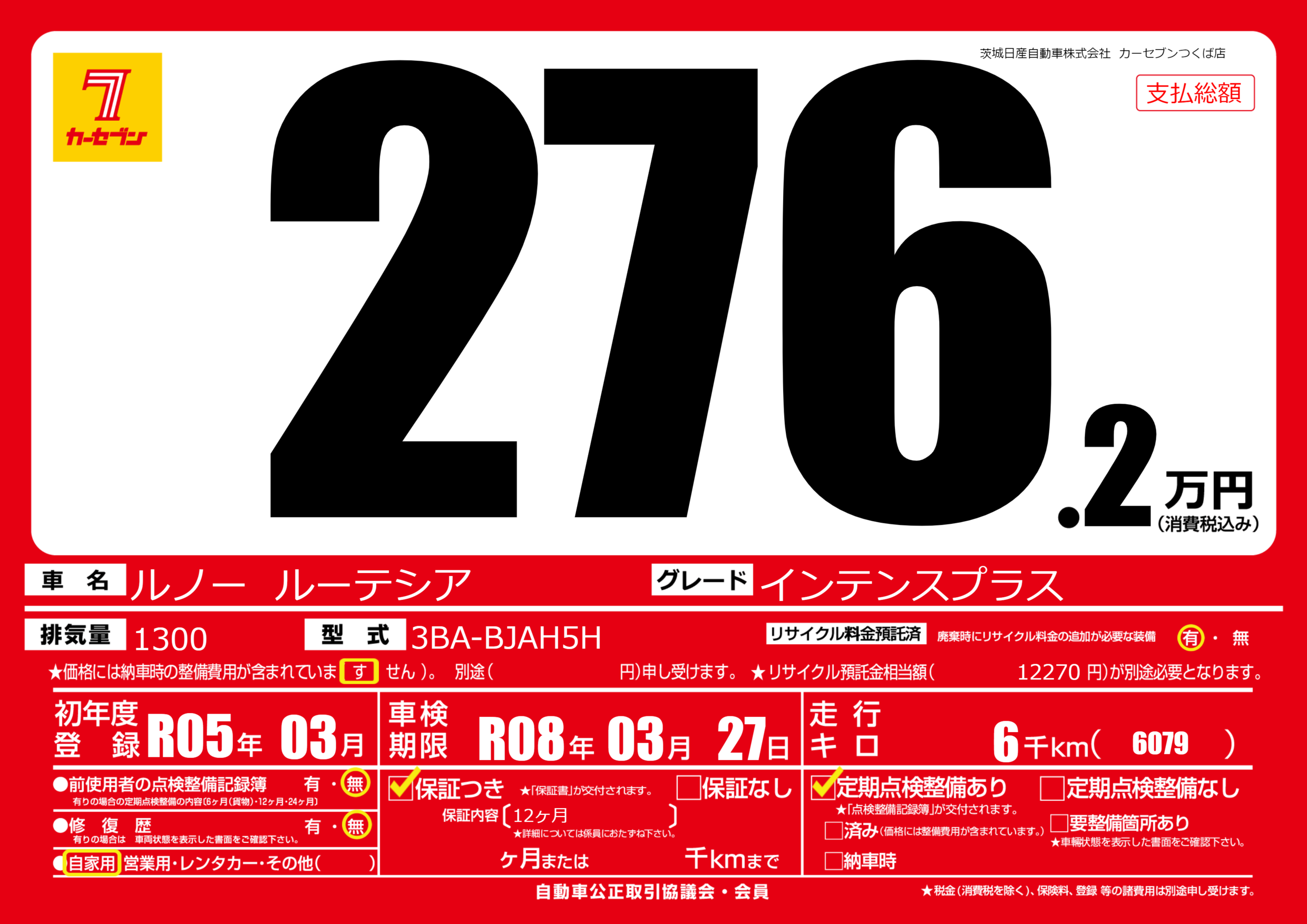 | 走行キロ | 0.6万km | 初年度登録 | R05年03月 |
