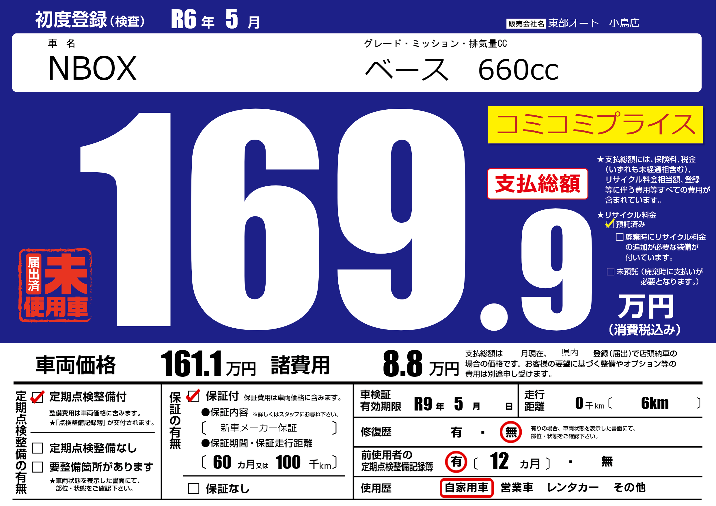 保証付き 保証内容( 新車メーカー保証) 60ヶ月または(100)千kmまで |