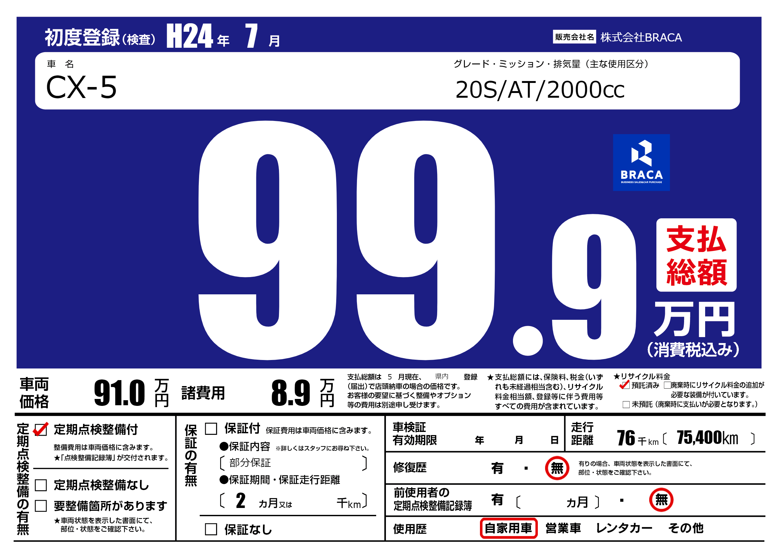 | 車名 | CX-5 | グレード ミッション 排気量 |
