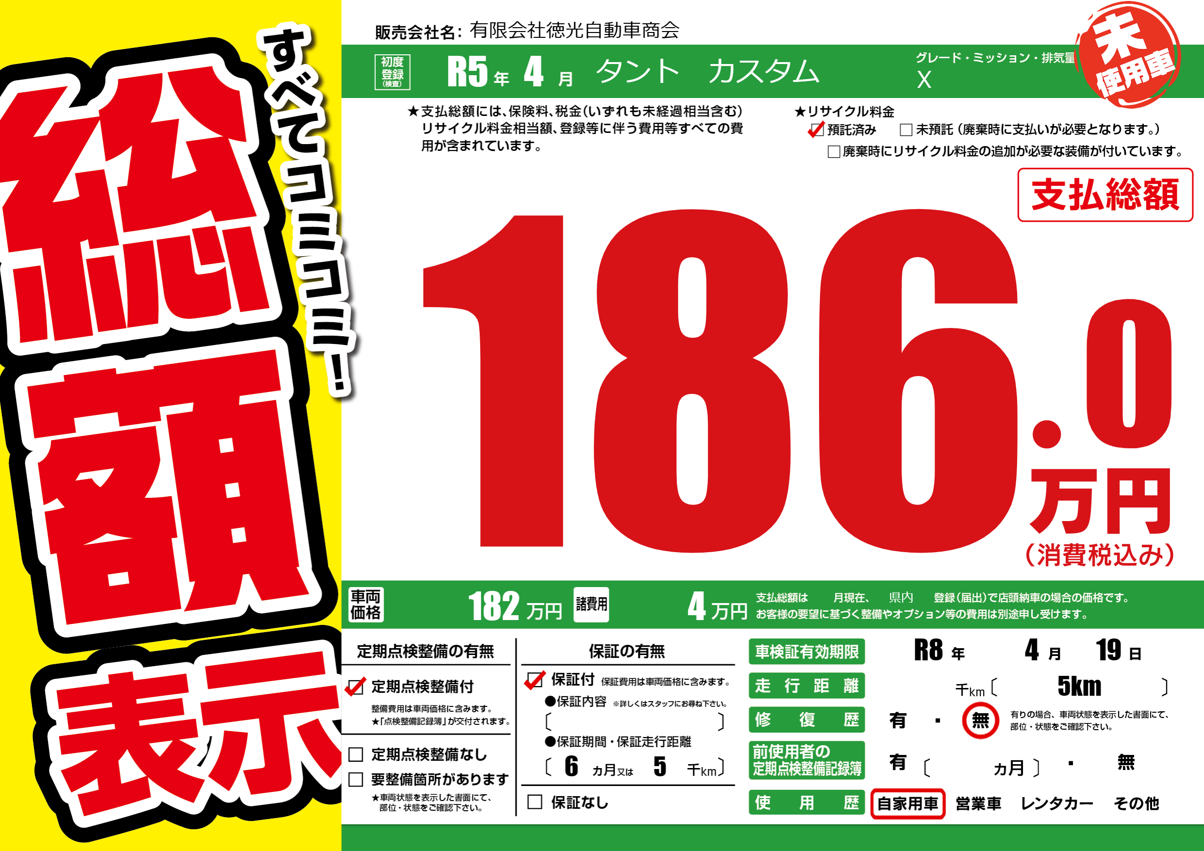 | 走行キロ | - | 初年度登録 | R5年4月 |