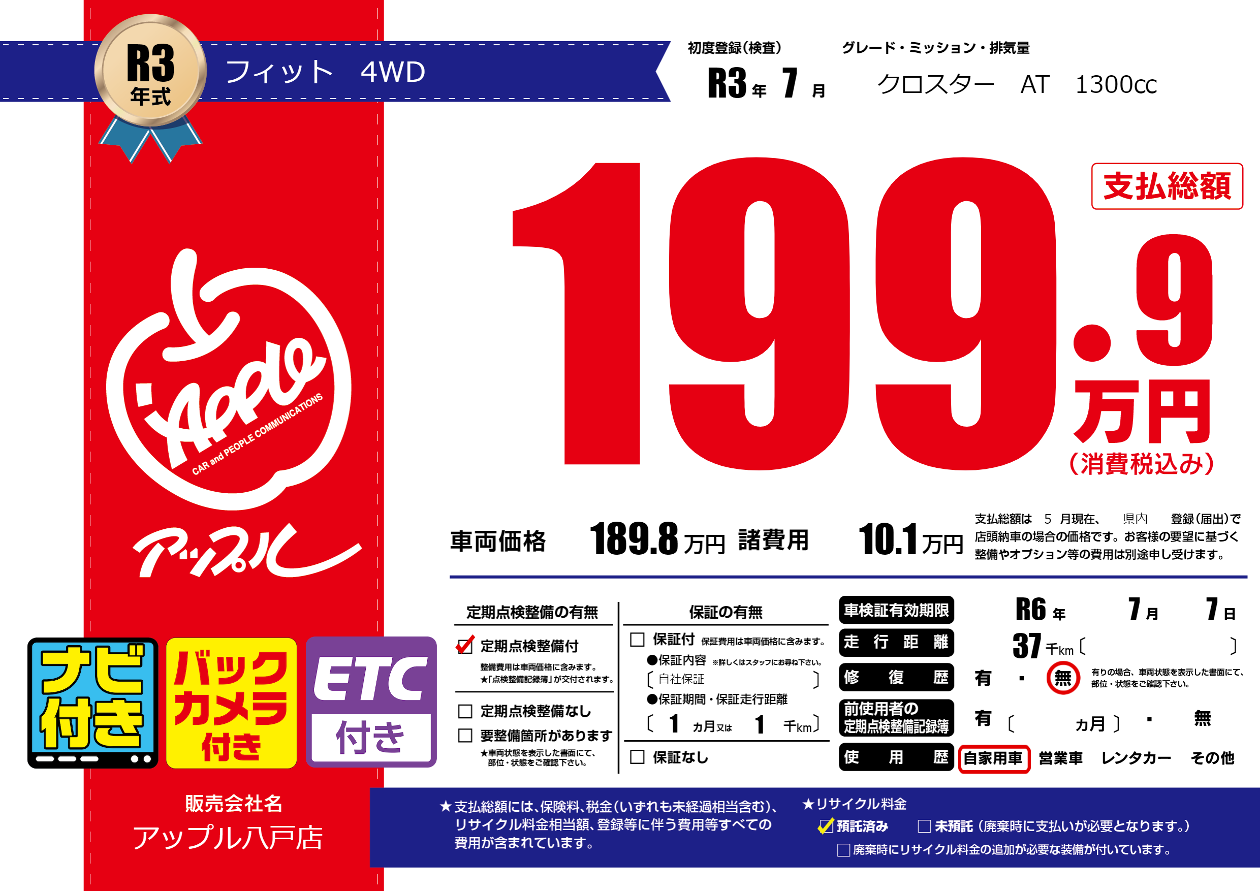 | 車名 | フィット 4WD | グレード ミッション 排気量 |