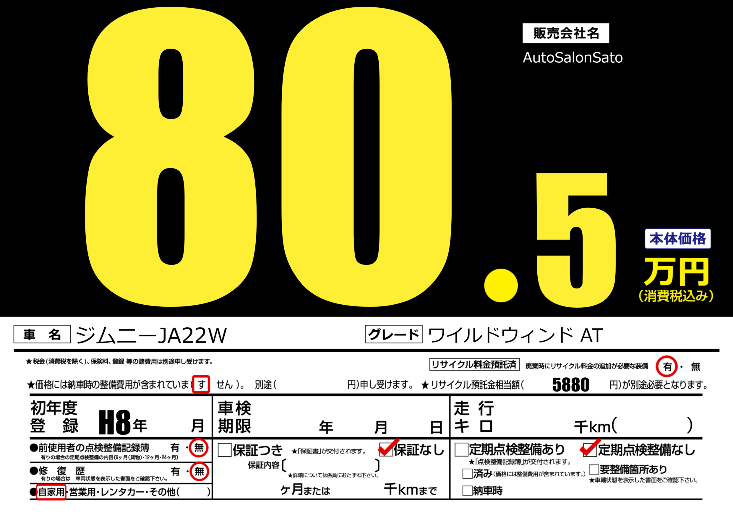 あり | リサイクル預託金相当額 | ( 5880円)が別途必要 |