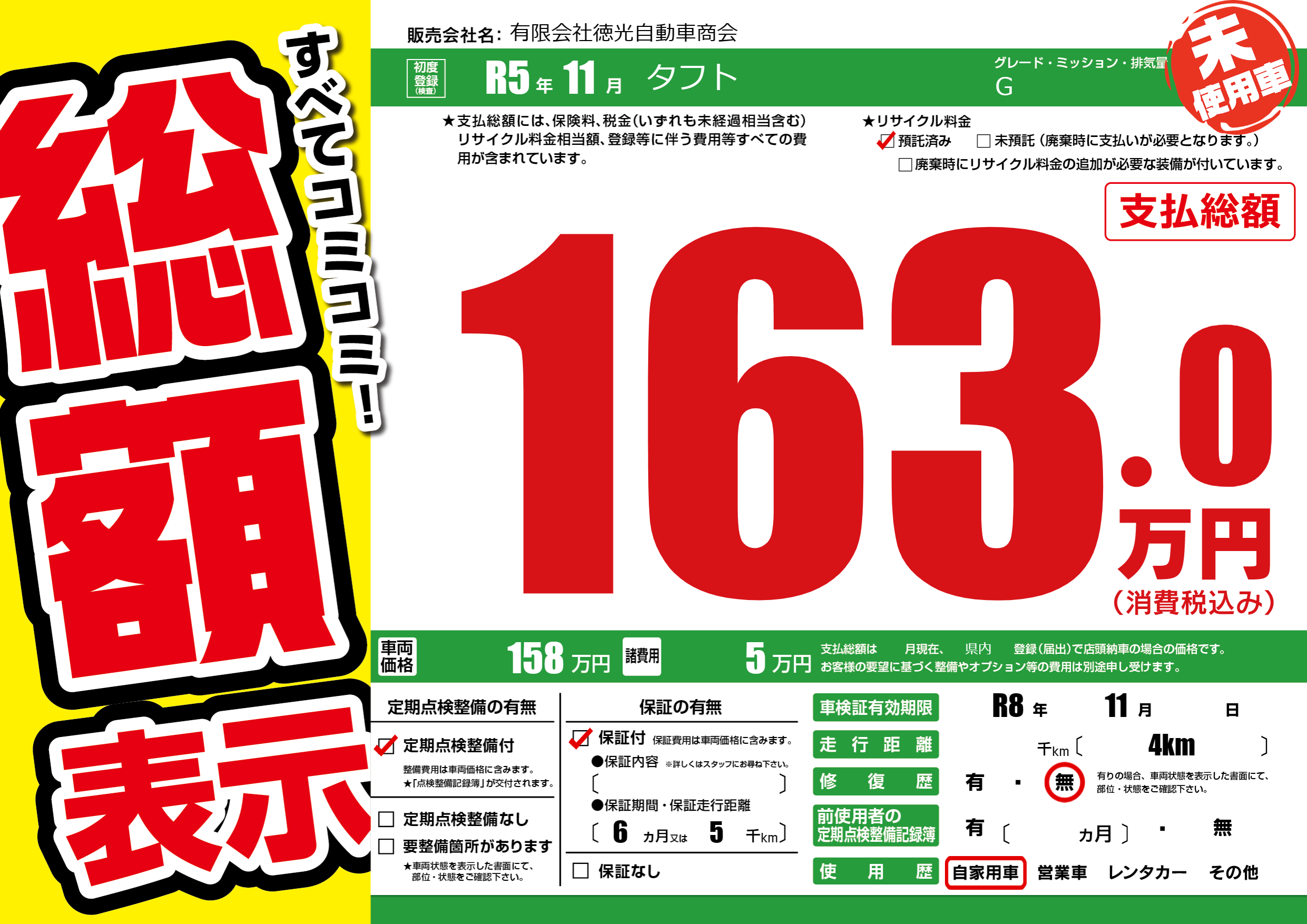 | 走行キロ | - | 初年度登録 | R5年11月 |