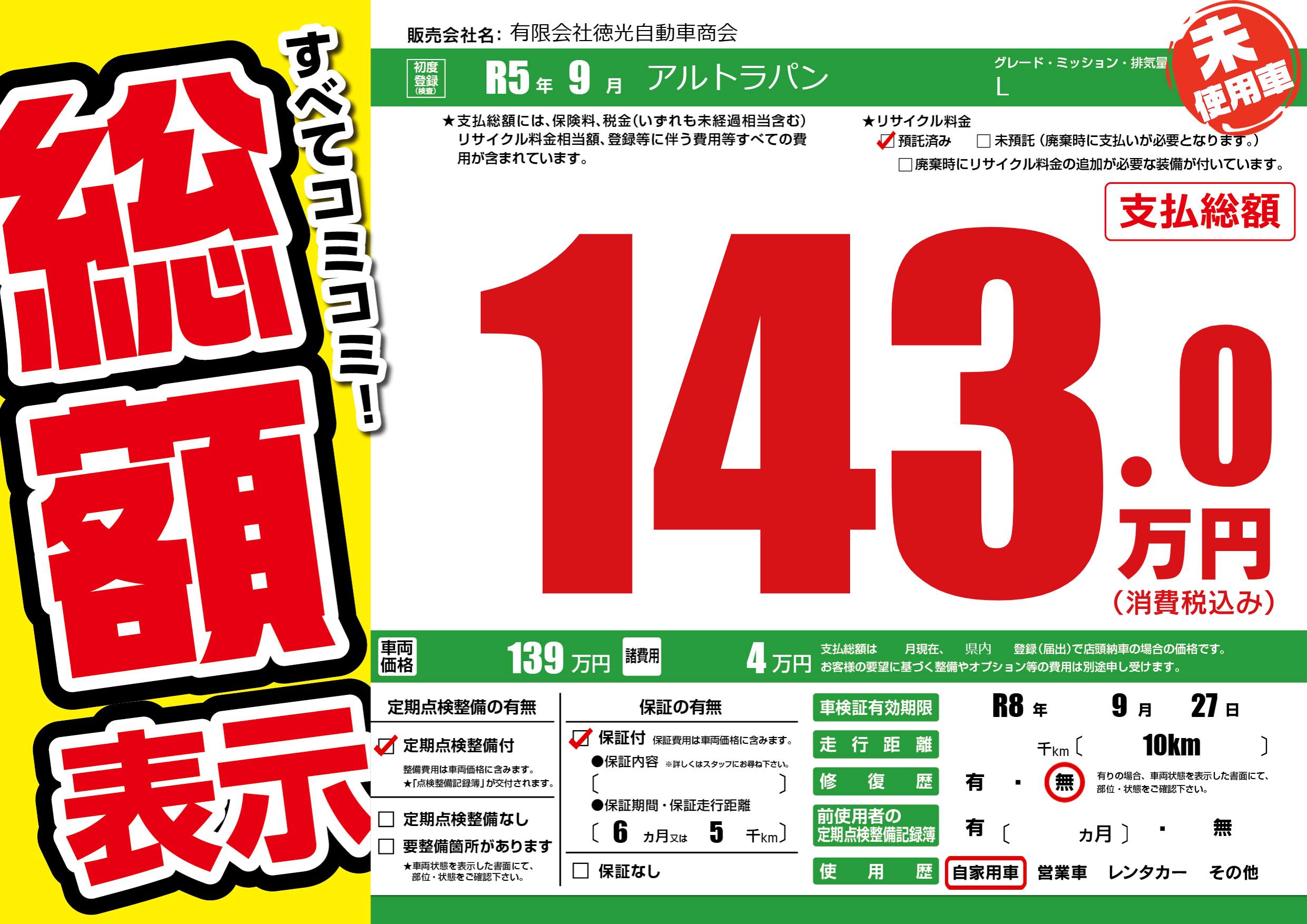| 走行キロ | - | 初年度登録 | R5年9月 |