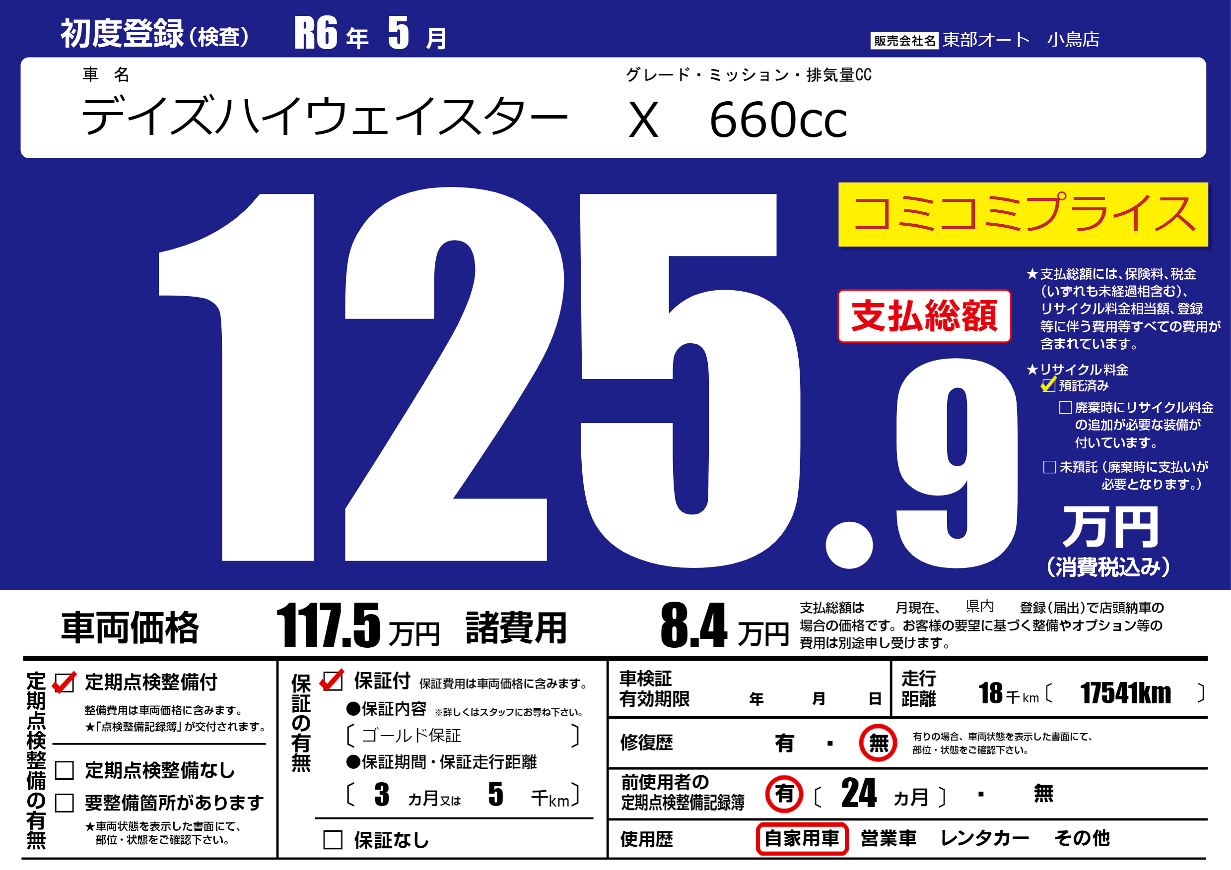 | 車名 | デイズハイウェイスター | グレード ミッション 排気量 |