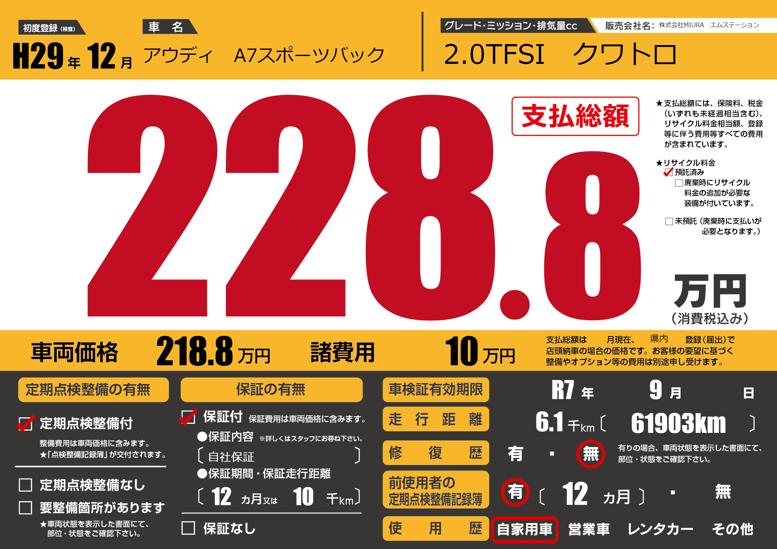 | 車検制限 | R7年 9月 - 日 | ||