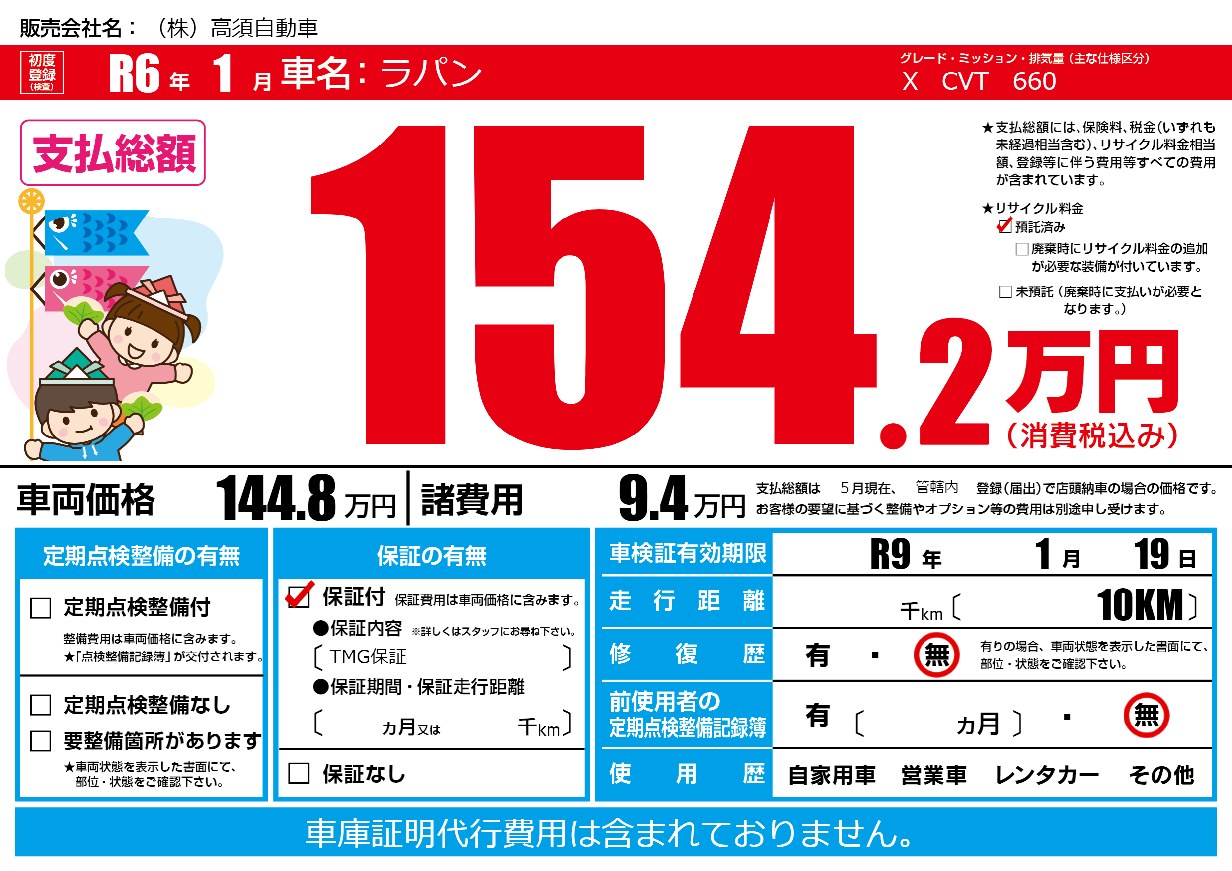 保証付き 保証内容(TMG保証) ---ヶ月または()千kmまで |