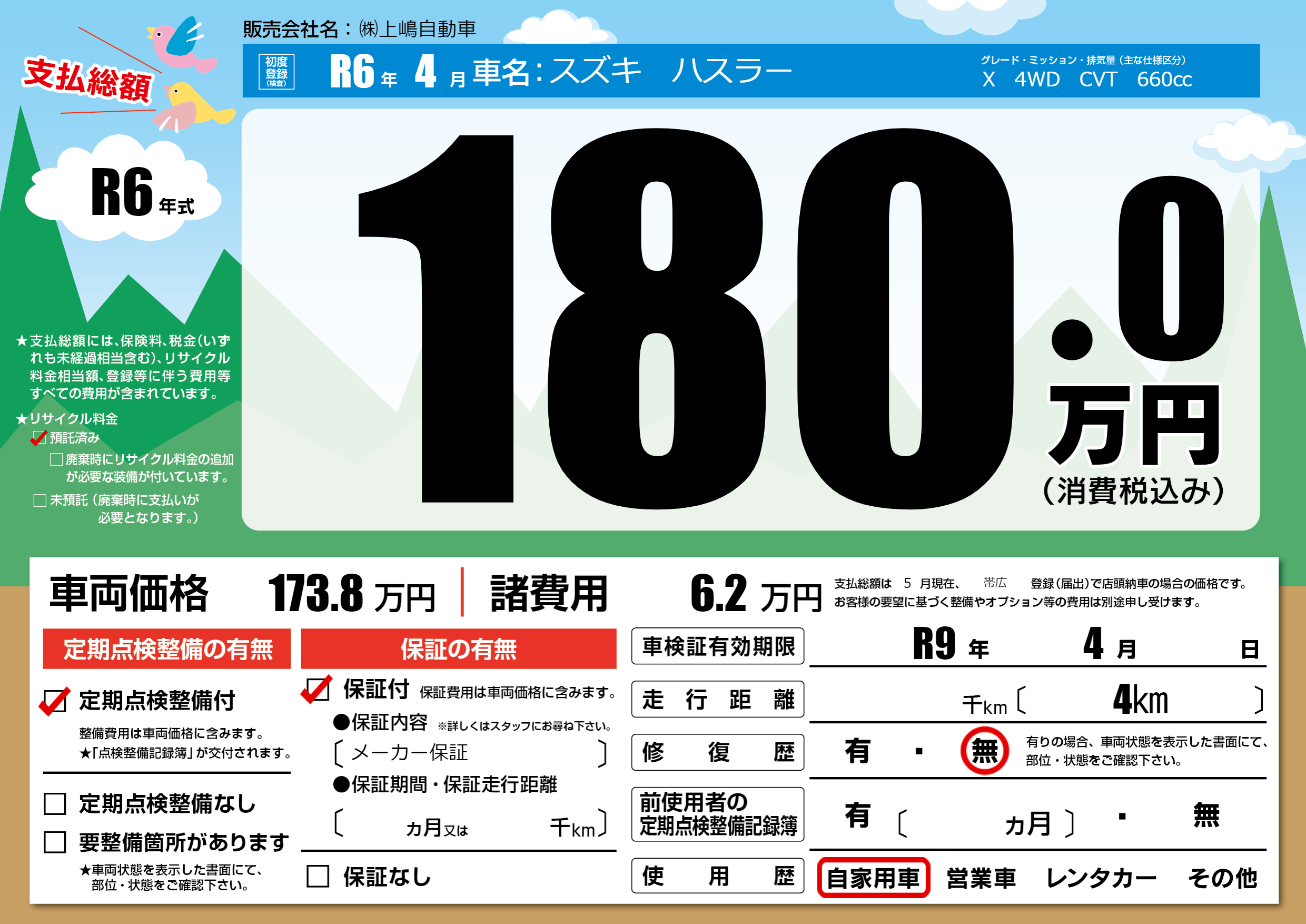 | 走行キロ | - | 初年度登録 | R6年4月 |