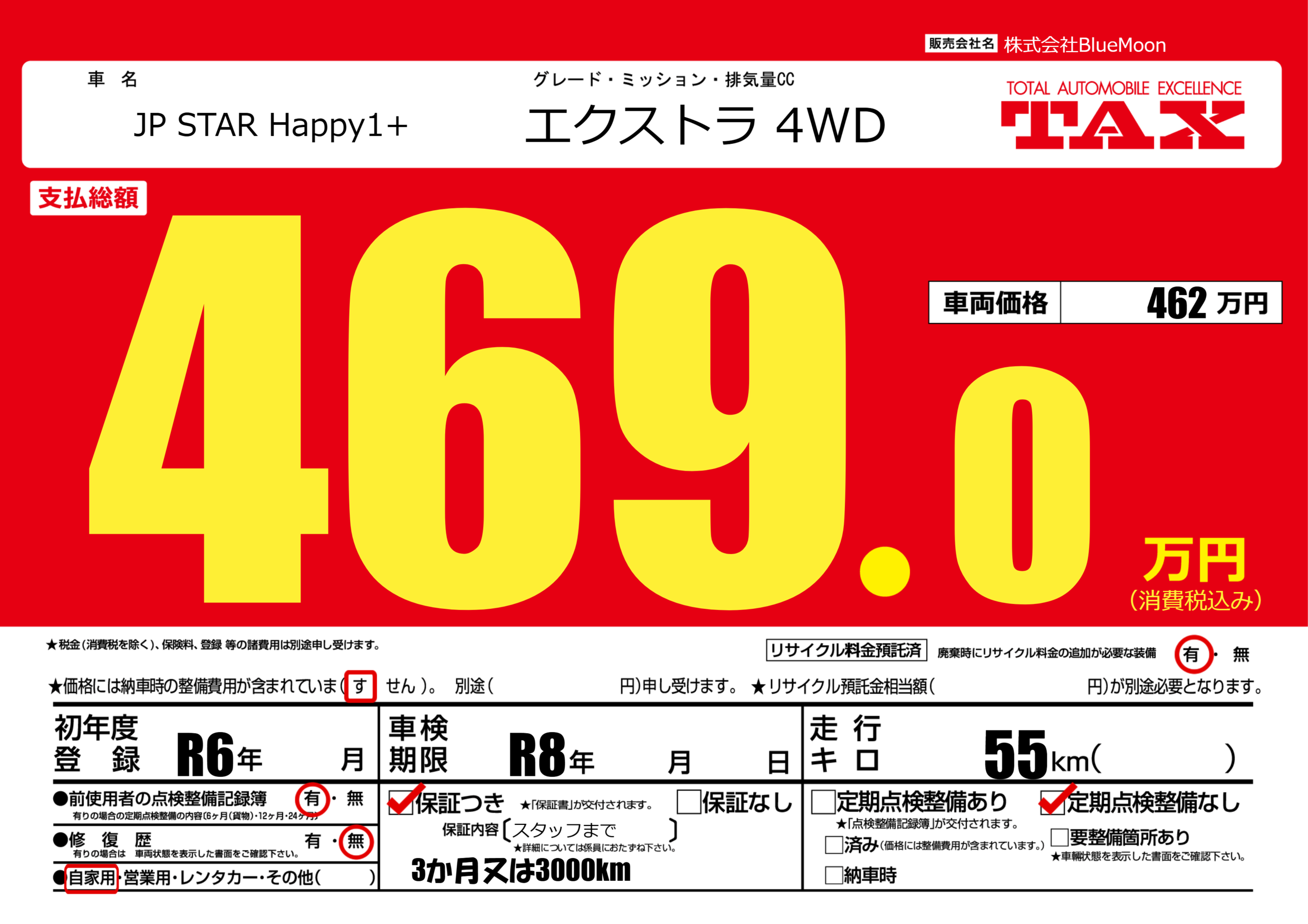 | 車名 | JP STAR Happy1+ | グレード ミッション 排気量 |