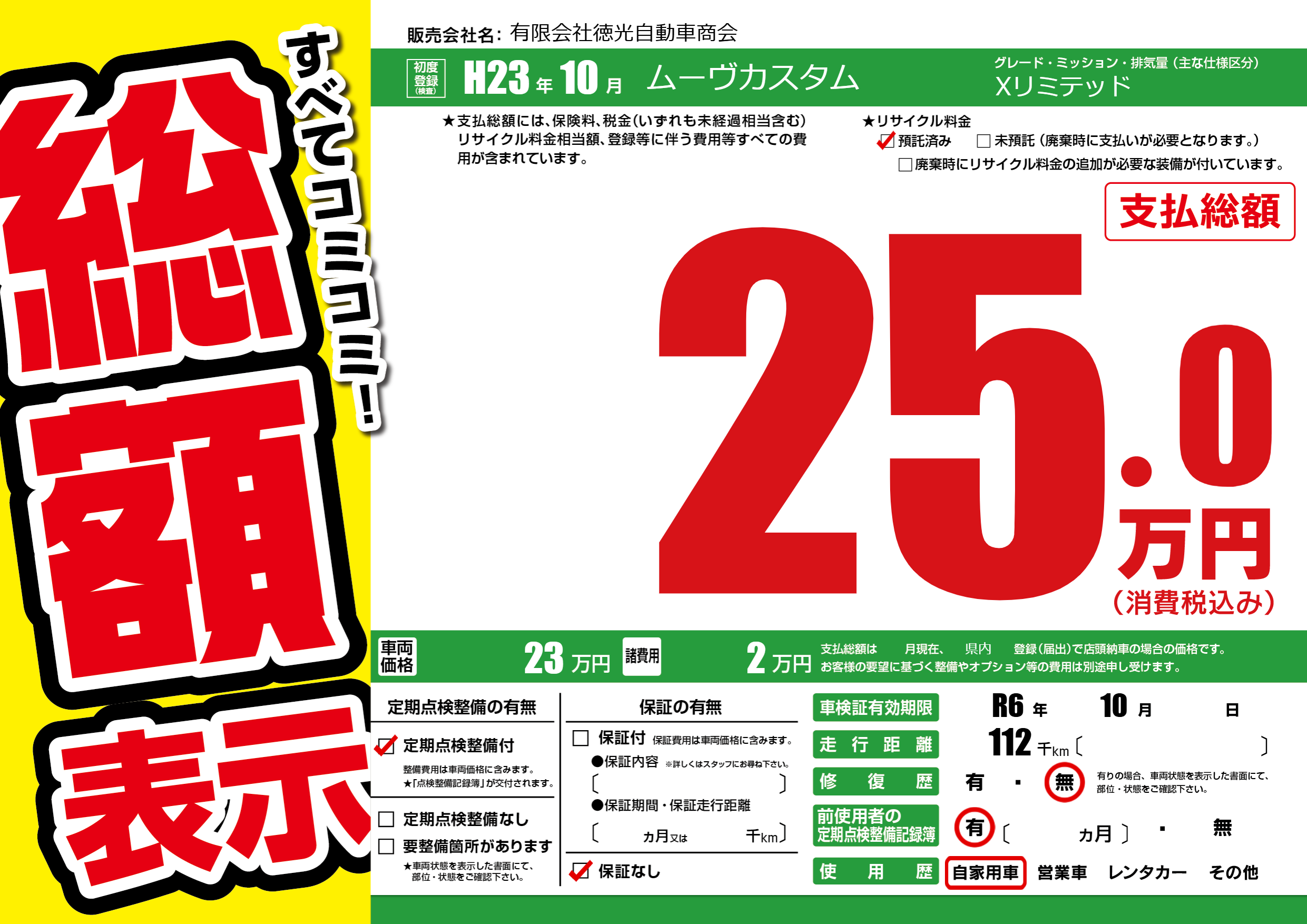 | 走行キロ | 11.2万km | 初年度登録 | H23年10月 |