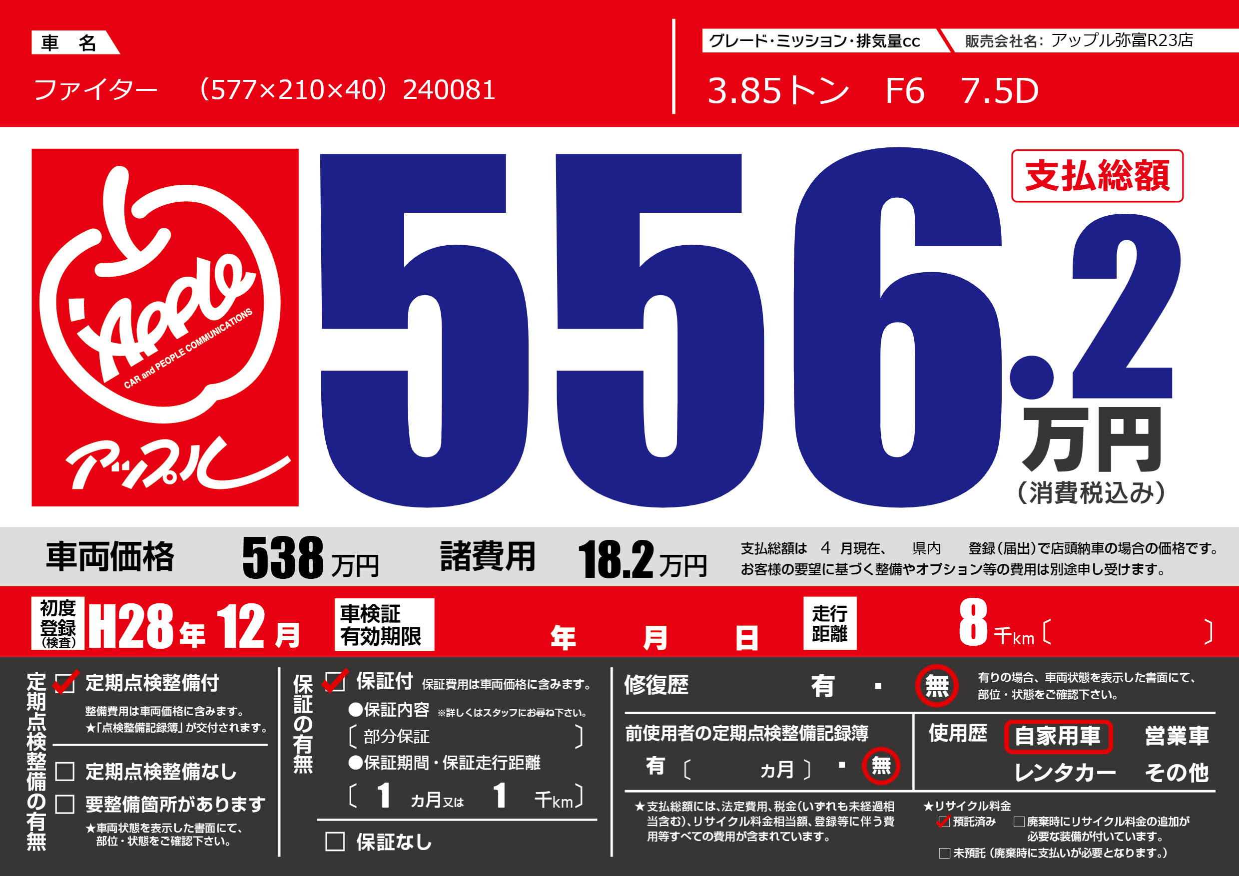 | 車名 | ファイター (577×210×40)240081 | グレード ミッション 排気量 |