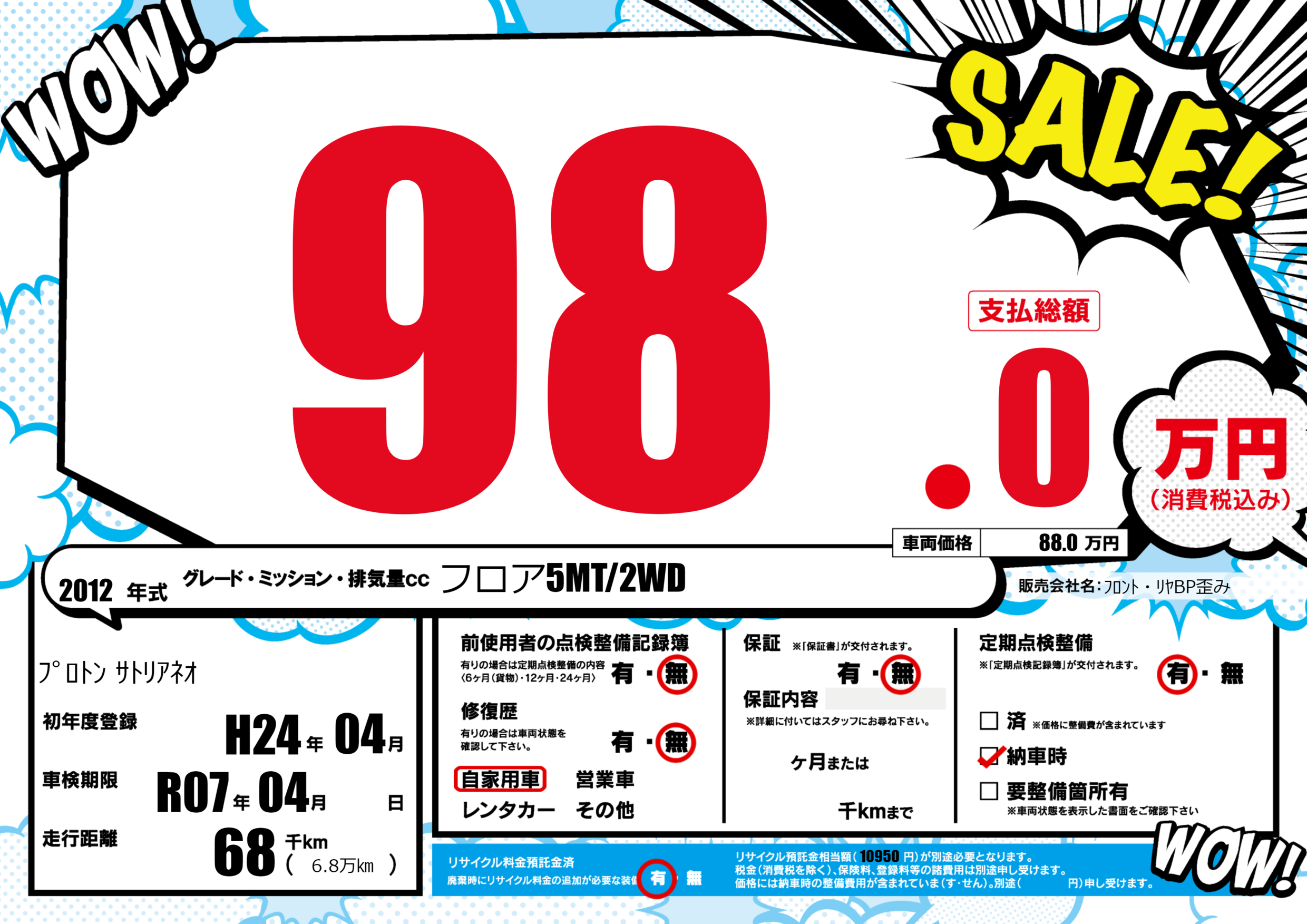 あり | リサイクル預託金相当額 | ( 10950円)が別途必要 |
