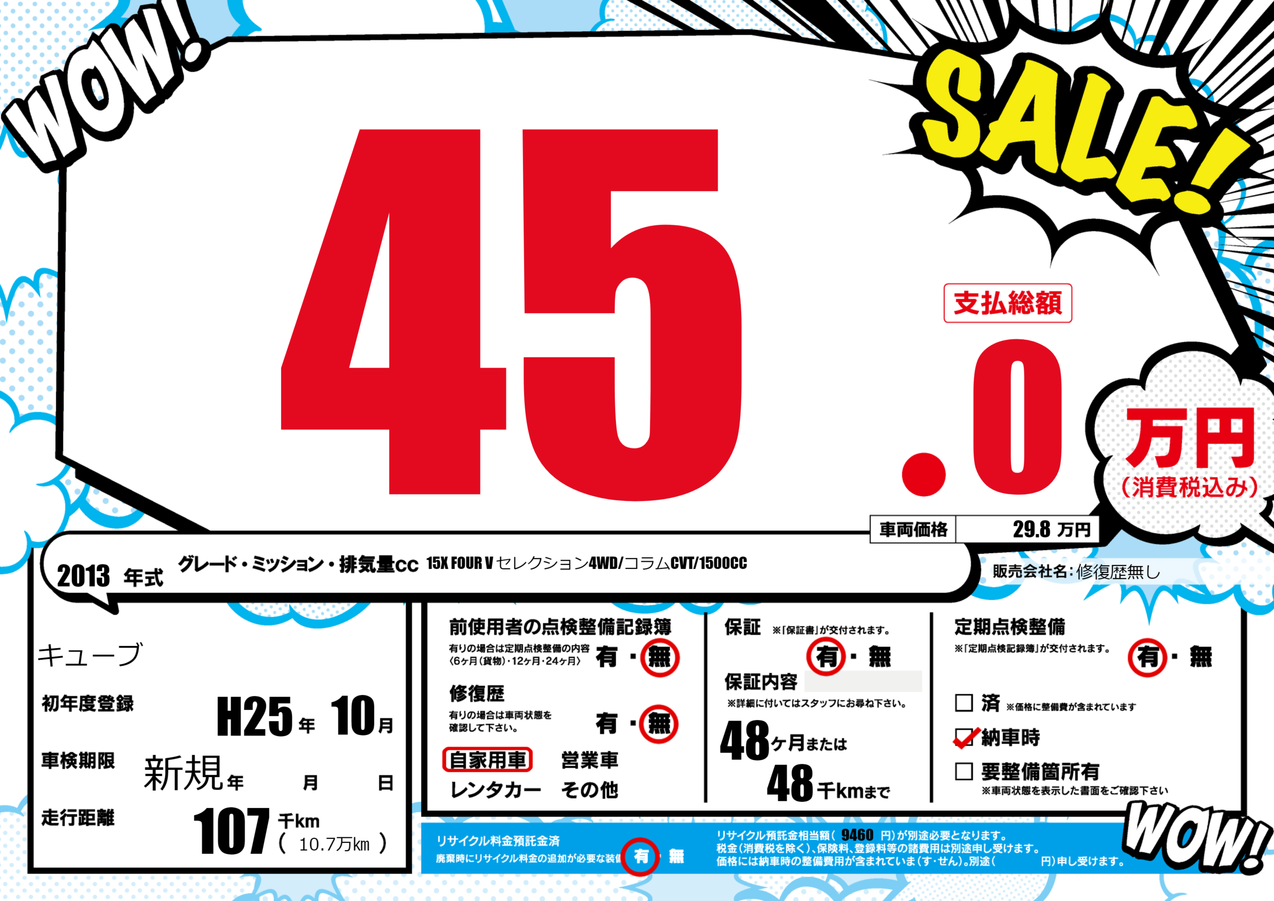 保証付き 保証内容(---) 48ヶ月または(48)千kmまで |