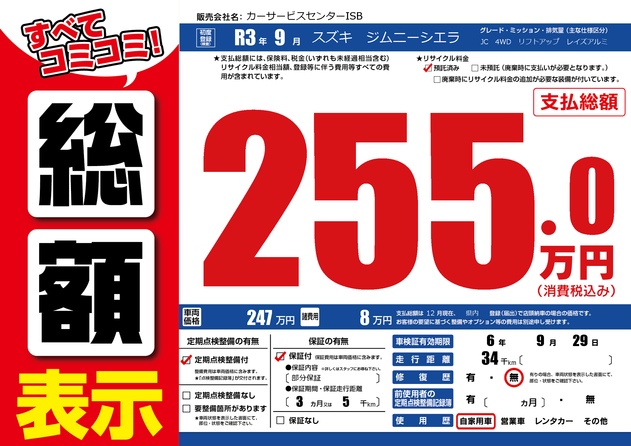 | 車検制限 | 6年 9月 29日 | ||